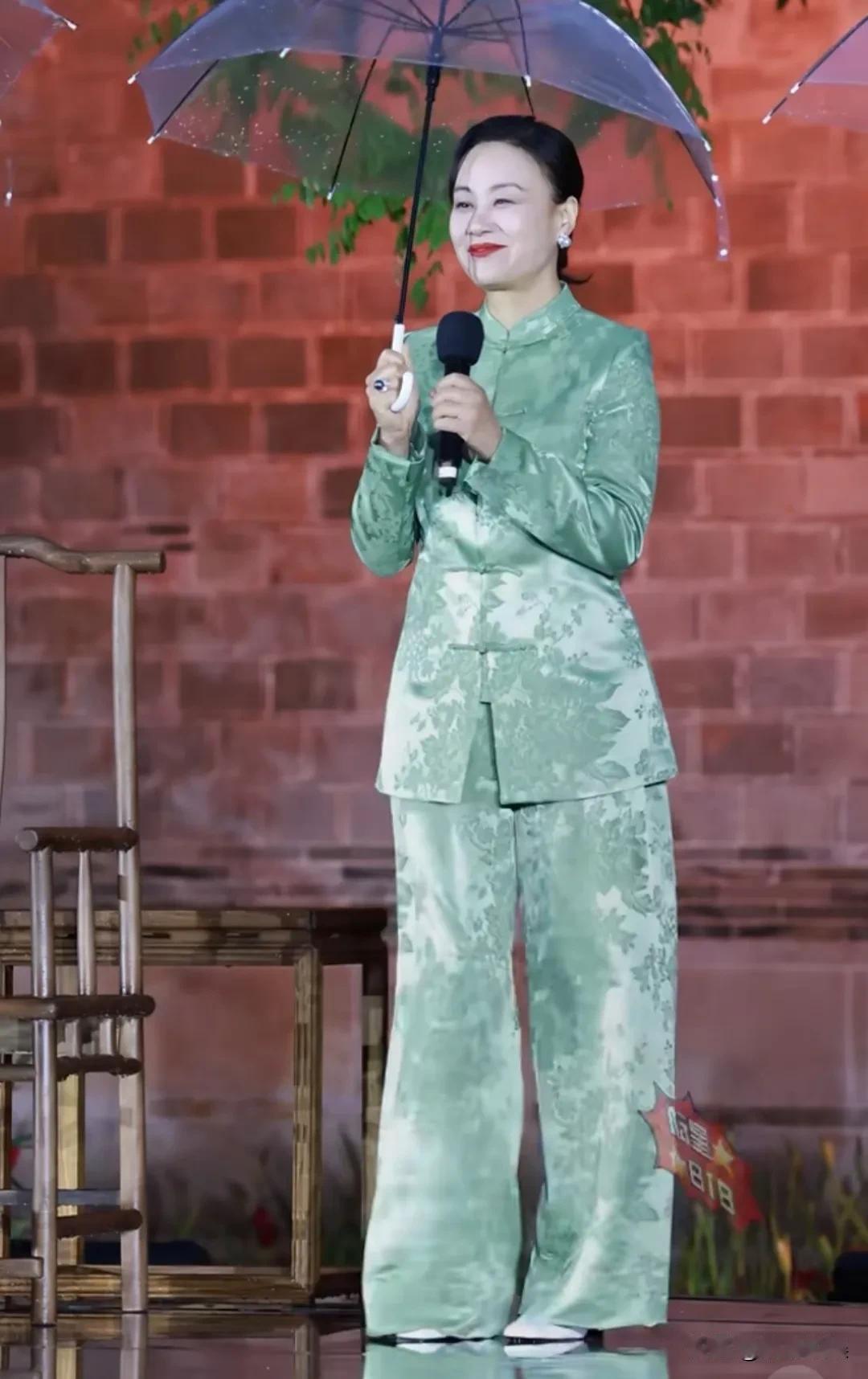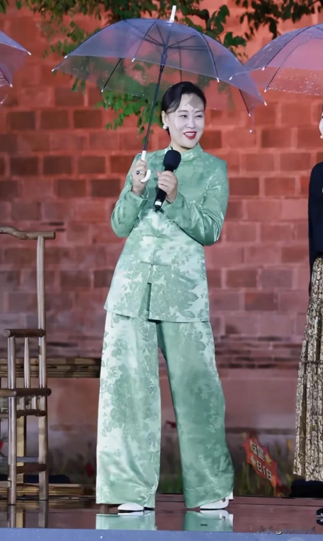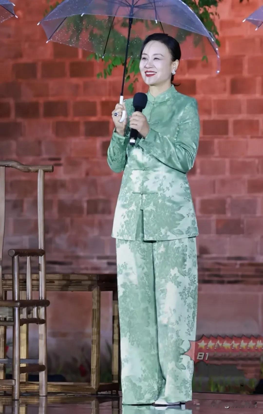 穿着一身浅绿色中式套装的她,肤色很白,身材高挑苗条,体态端庄,一上台,就和主持人弯腰问好,一看就是那种很有教养和内涵的人。