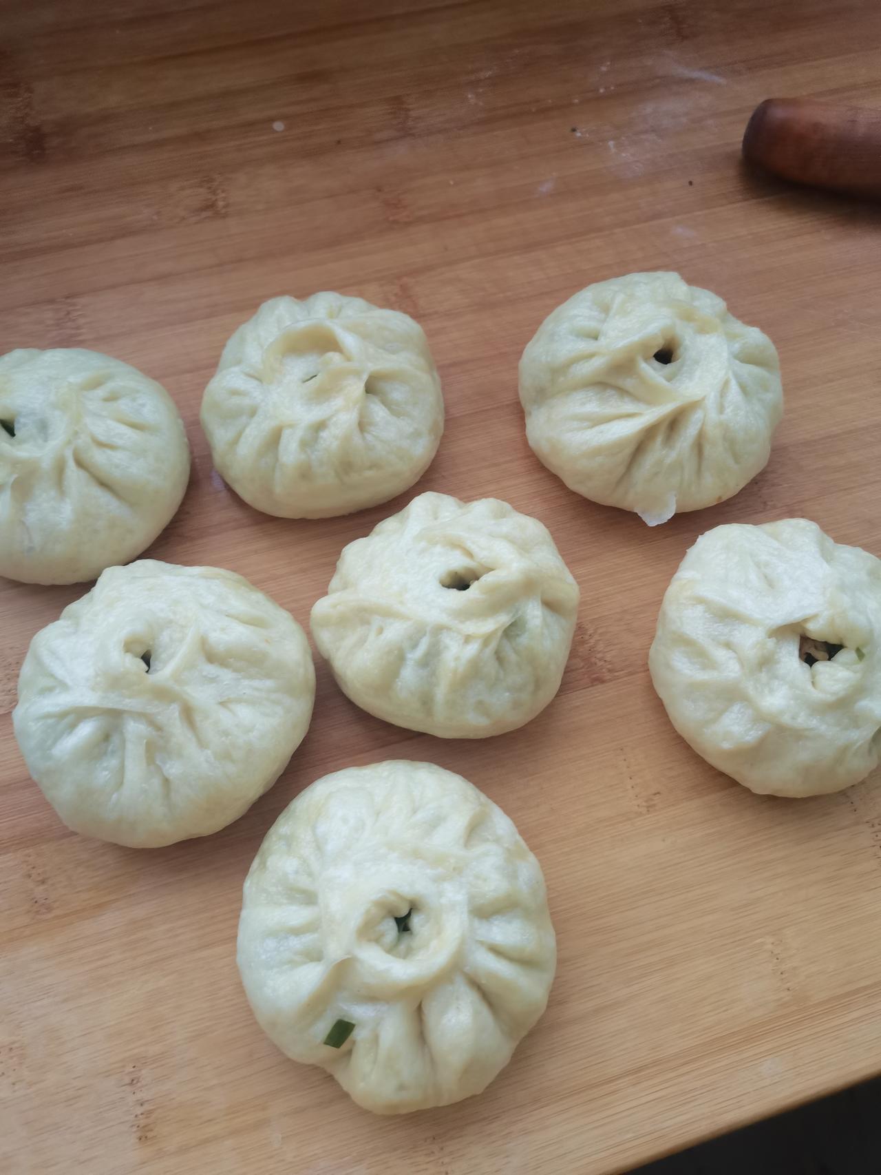 今天老公自己种的韭菜割了,让我做包子,才用安琪酵母发面做了包子,做的包子不好看,还挺好吃。