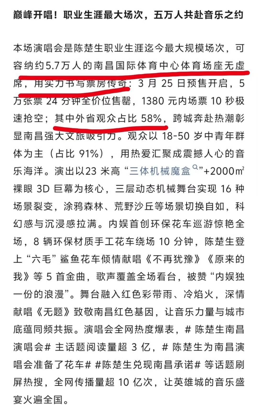 听说陈楚生南昌演唱会拉动南昌综合消费近10亿元,真的是惊呆了啊,花生们都这么有钱吗[捂脸]!