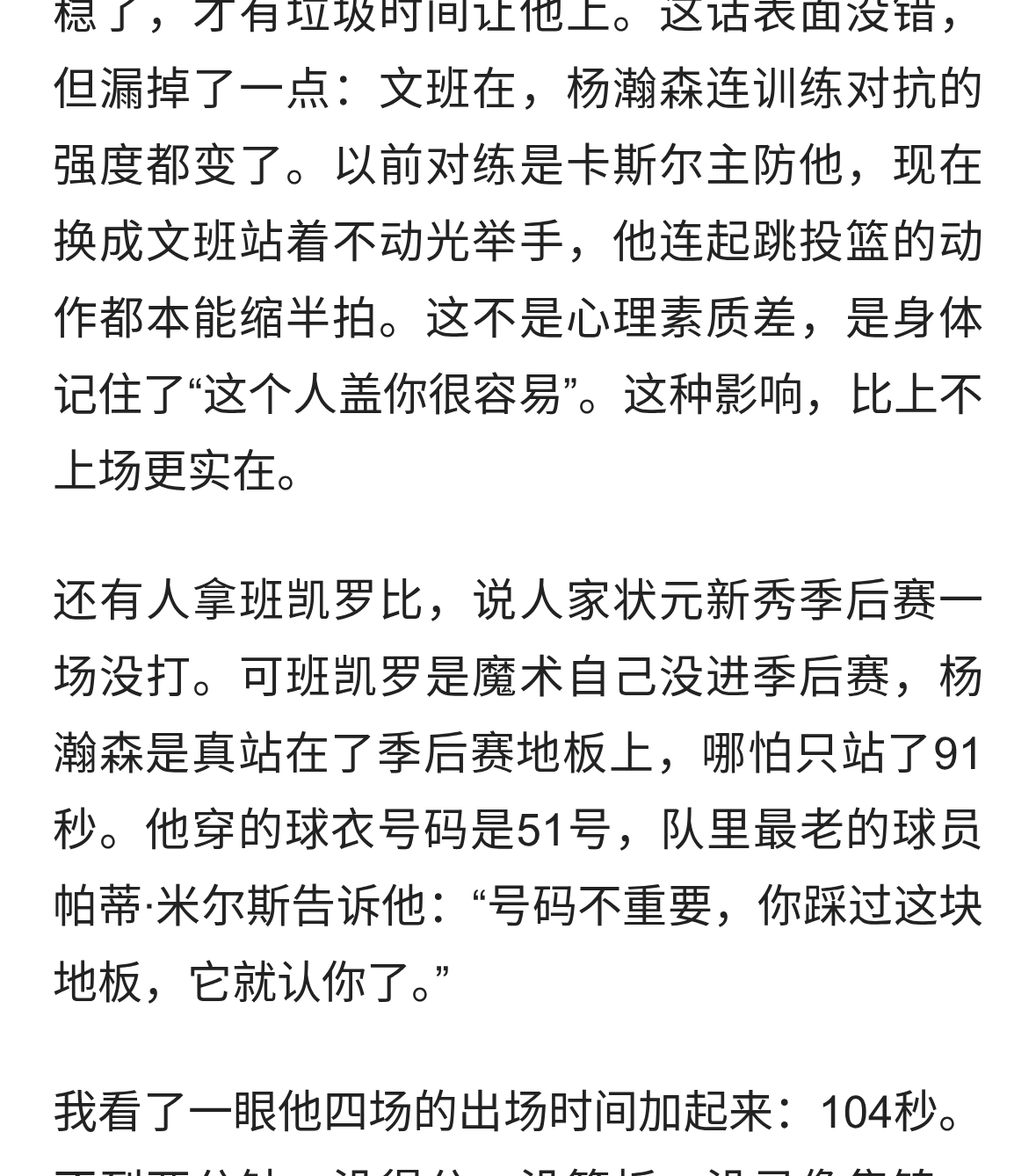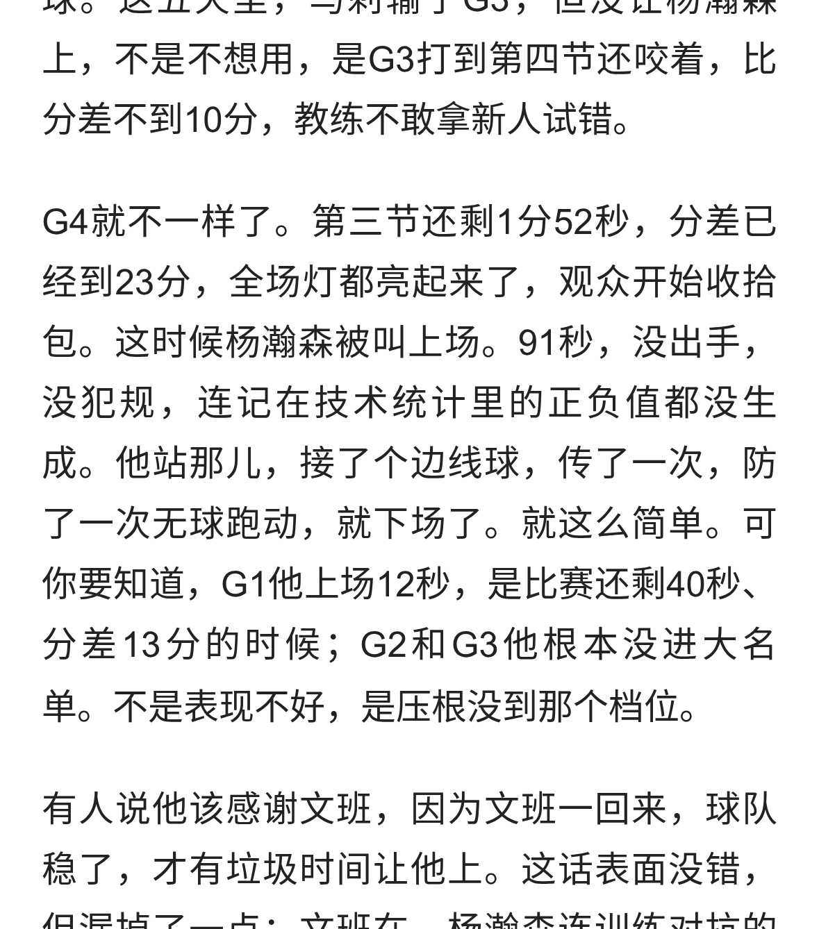 91秒登场,文班亚马休五天,杨瀚森到底在打什么?