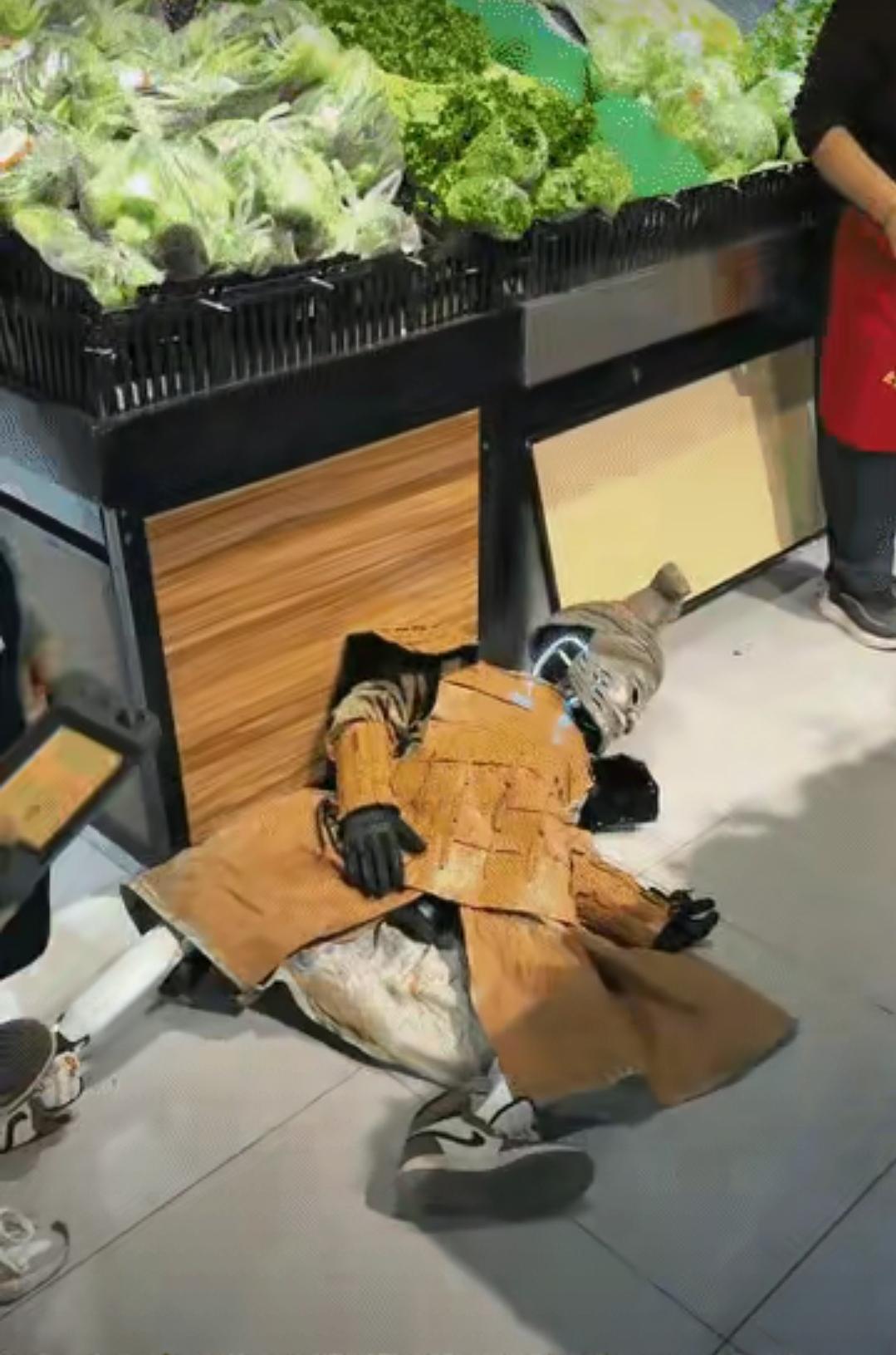 一开始还挺像样,跟个巡逻的大将军似的。谁知道走到货架角那,咣当一下,把自己给绊了个大跟头!