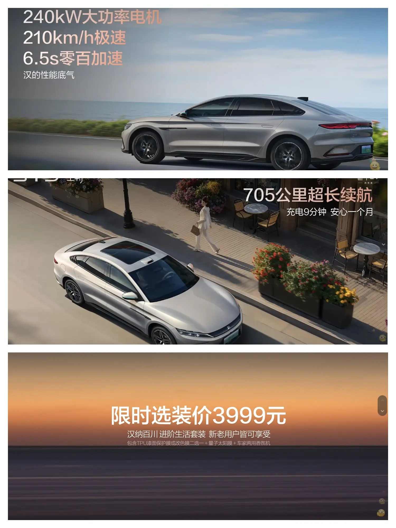 但如果为了追求实用性,从我个人角度来看尊贵版就够了,毕竟都支持闪充技术。汉EV的外观比较经典,作为家用轿车还是没啥压力。