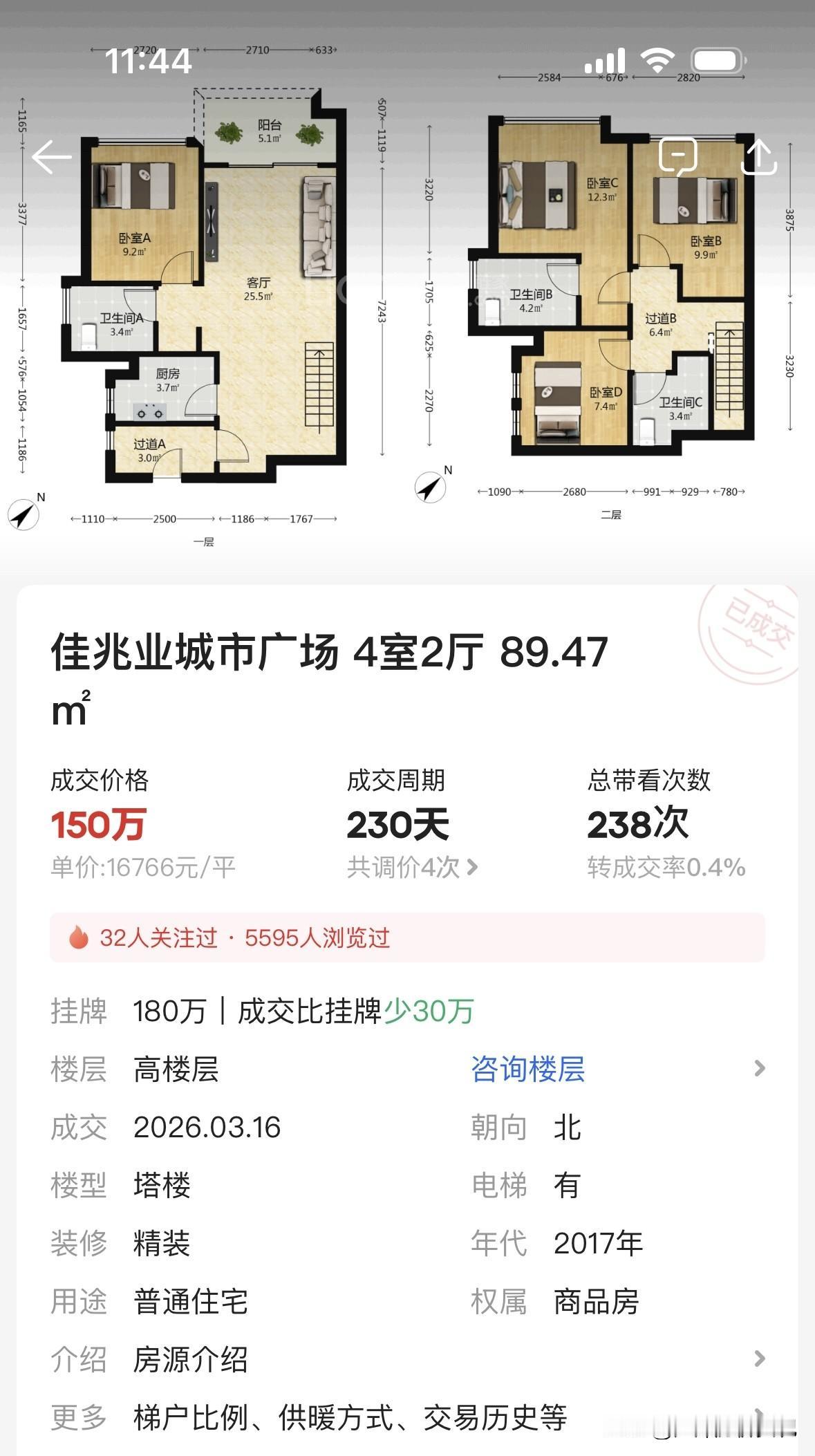 四万四的单价,业主当初可能还觉得自己捡了便宜。