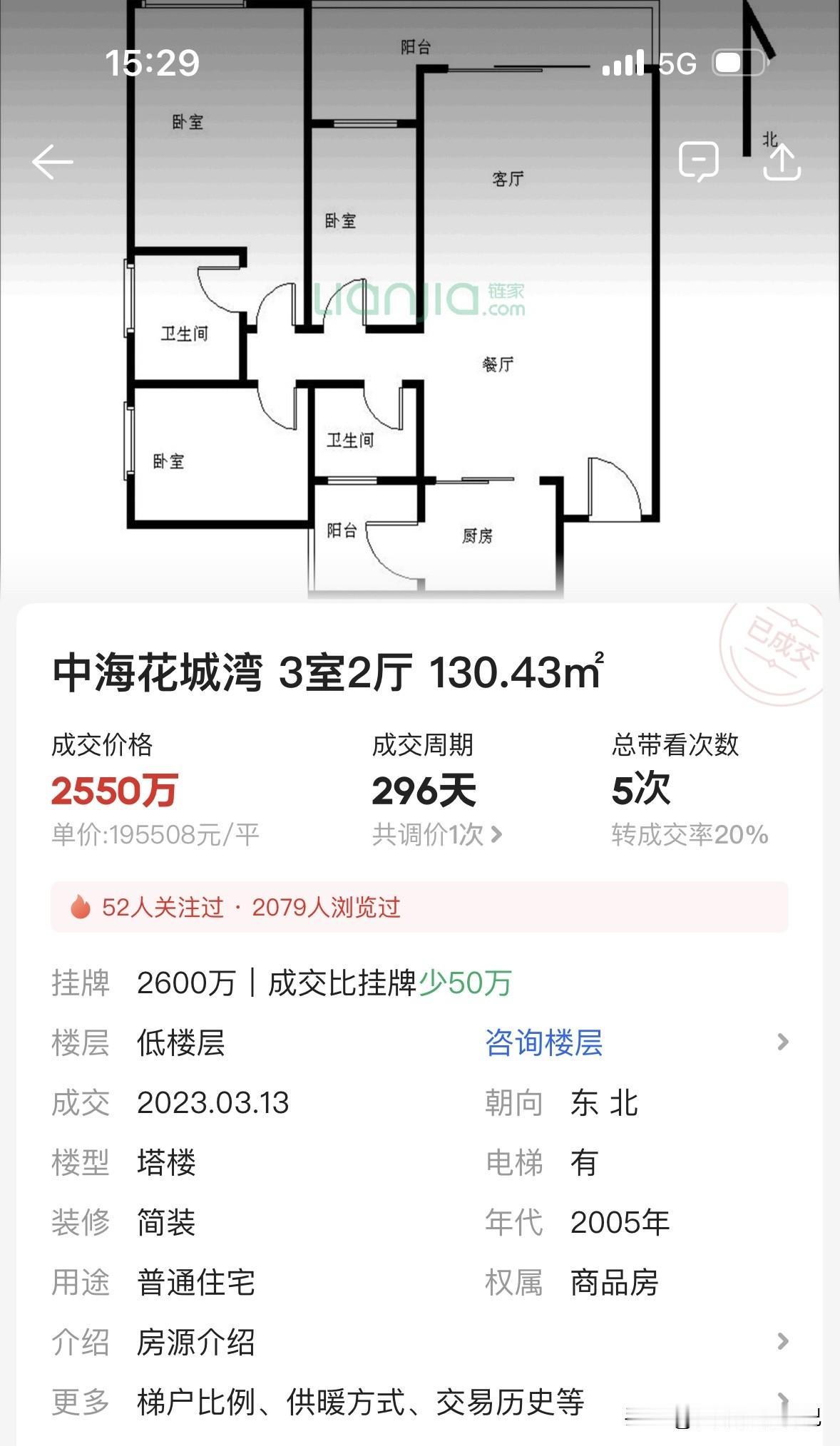 一套2023年3月成交,2550万,单价19万5。