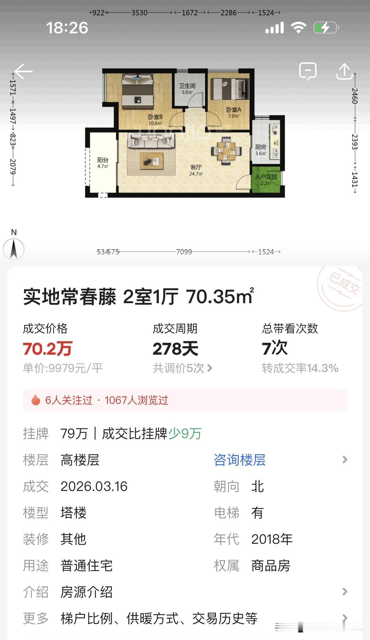 五年后,2026年3月,同一个小区,同样是70平两房,同样朝北。