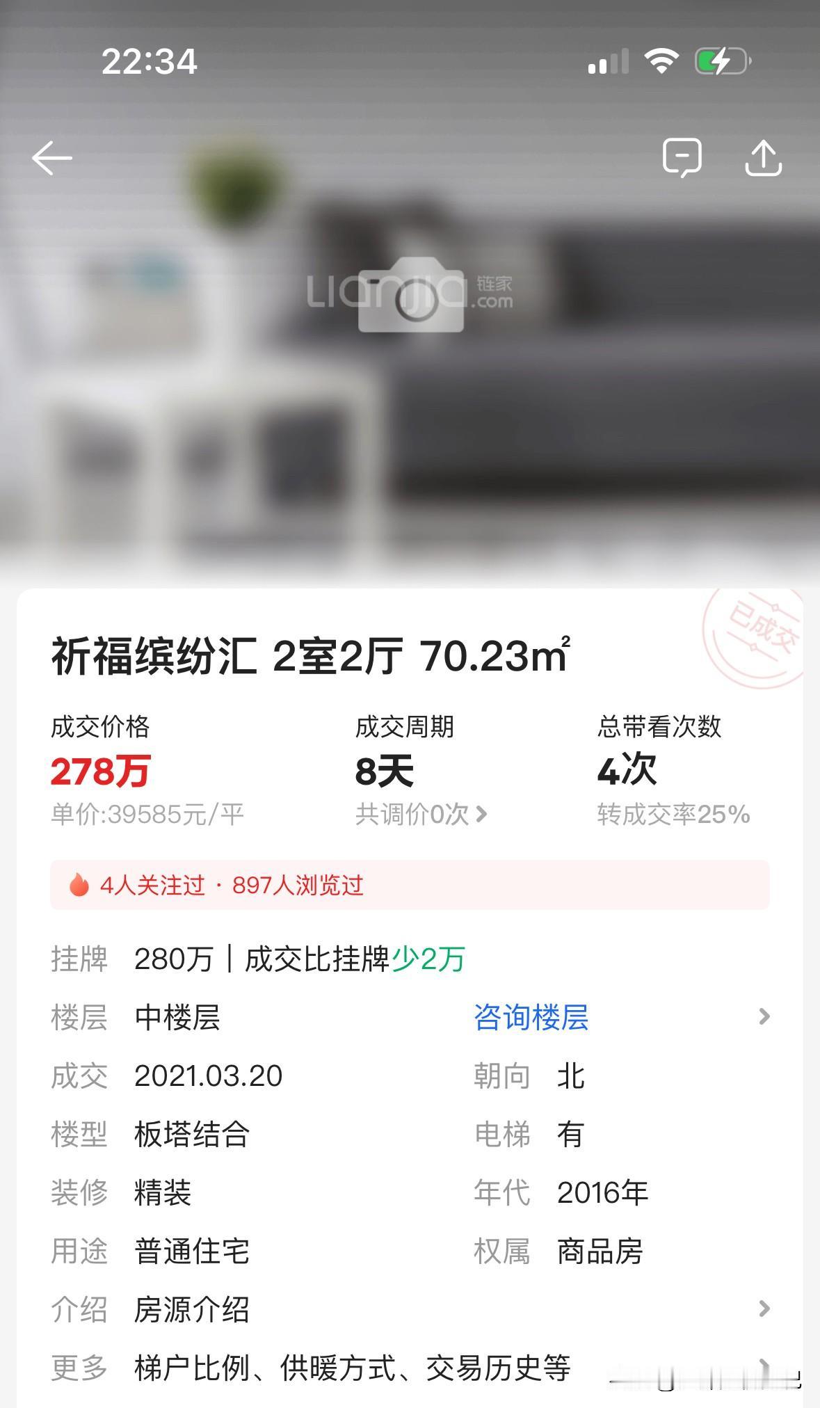 2021年3月的时候,【祈福缤纷汇】一套70平方的北向2房,成交价达到278万,单价直逼4万/平米。