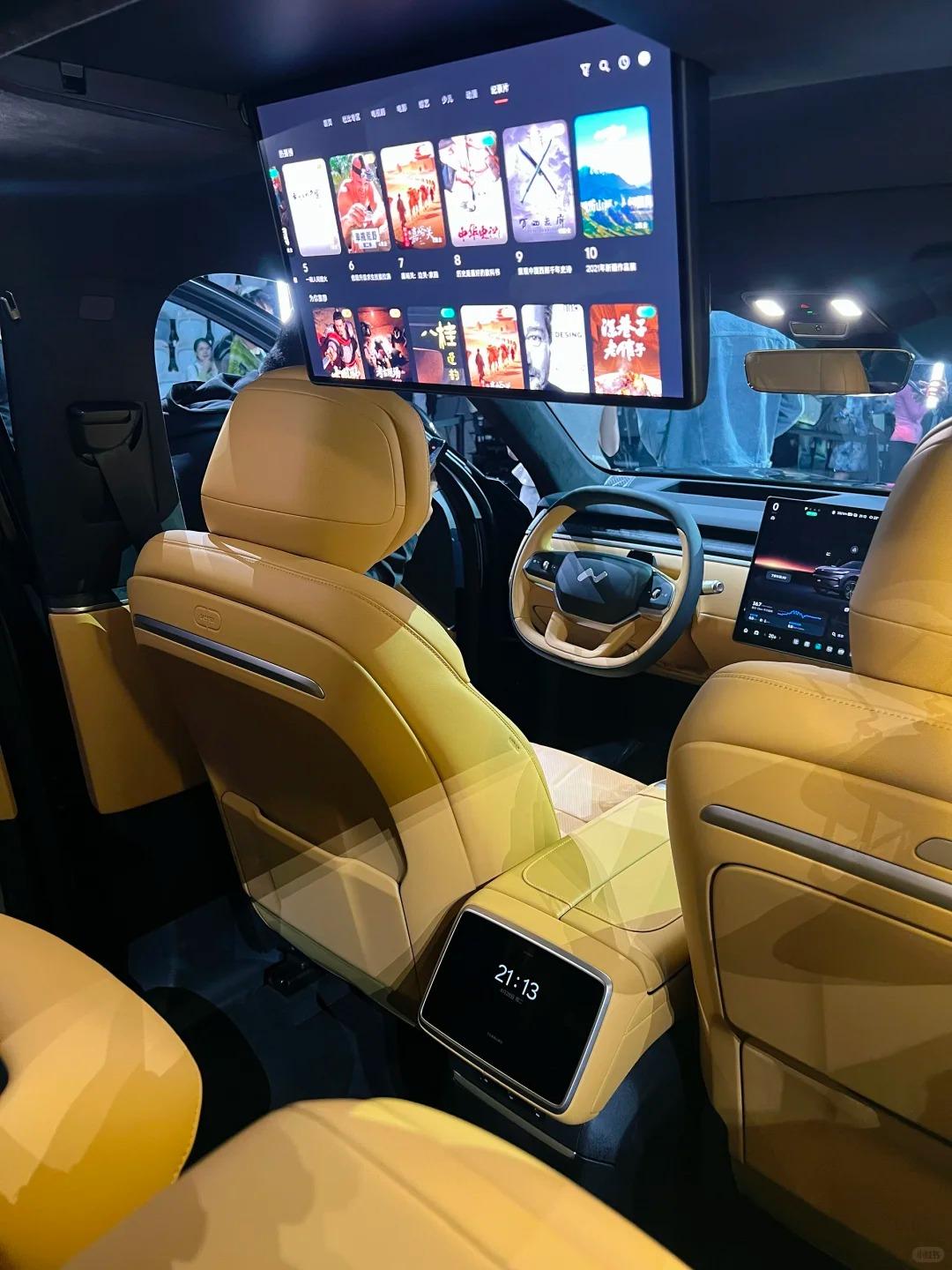 环抱式中控+大屏+无线充电,后排有液晶屏和吸顶娱乐屏。