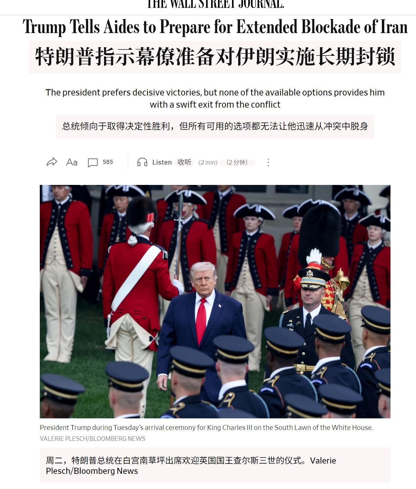 🔻华尔街日报:特朗普指示幕僚准备对伊朗实施长期封锁。🔻这意味着霍尔木兹海峡也
