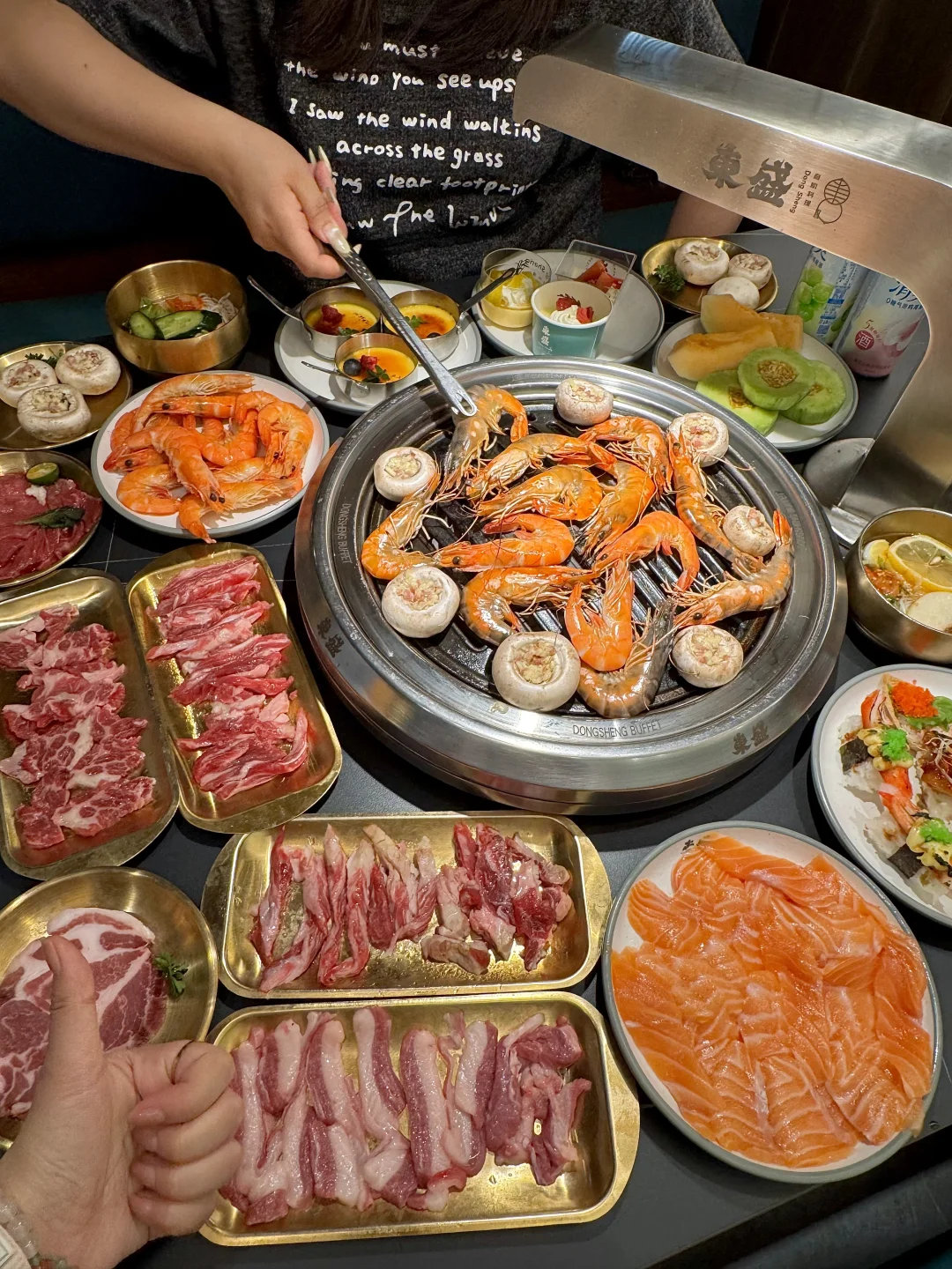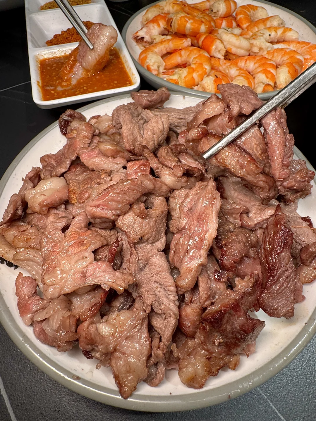 1️⃣先吃烤肉!鳗鱼、黑虎虾、牛肋条、五花肉