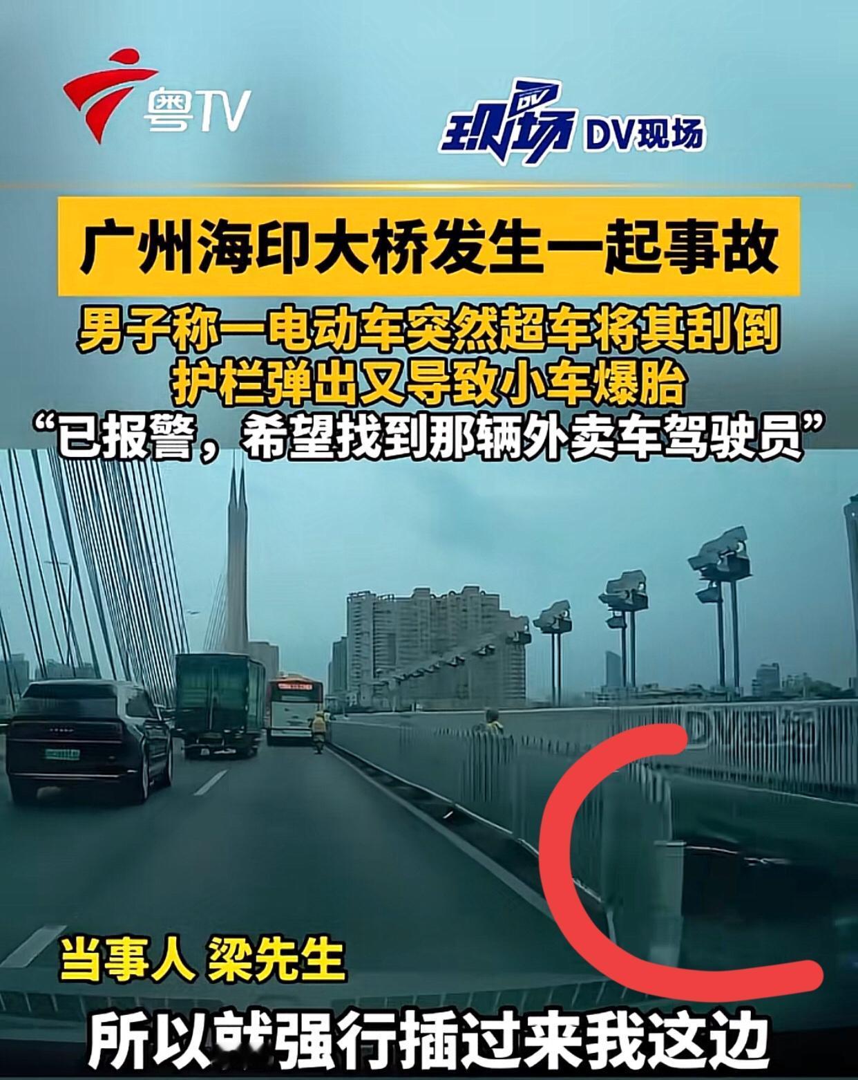“广州清逃”,这次看你的了! 4月28日下午,广州海印大桥,一男子开电鸡正常行驶