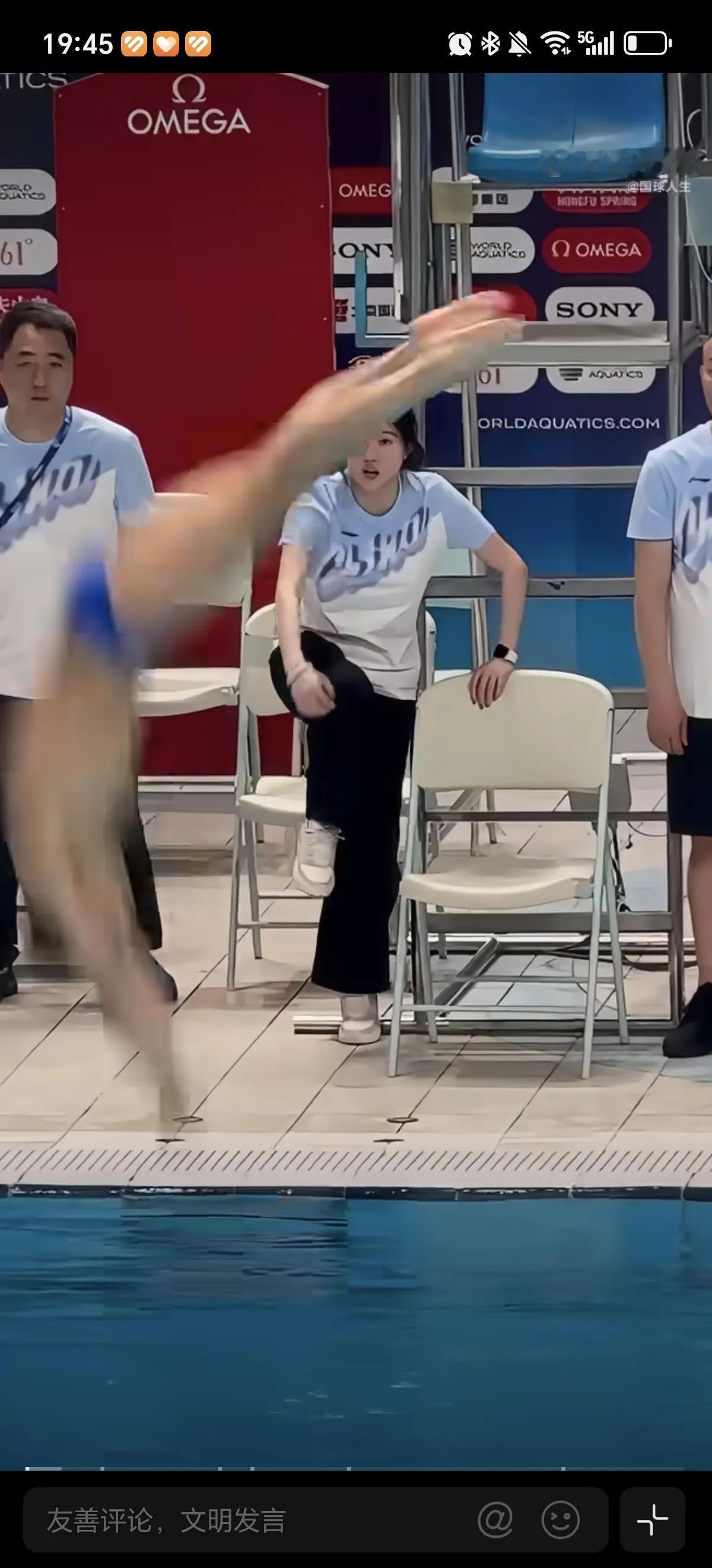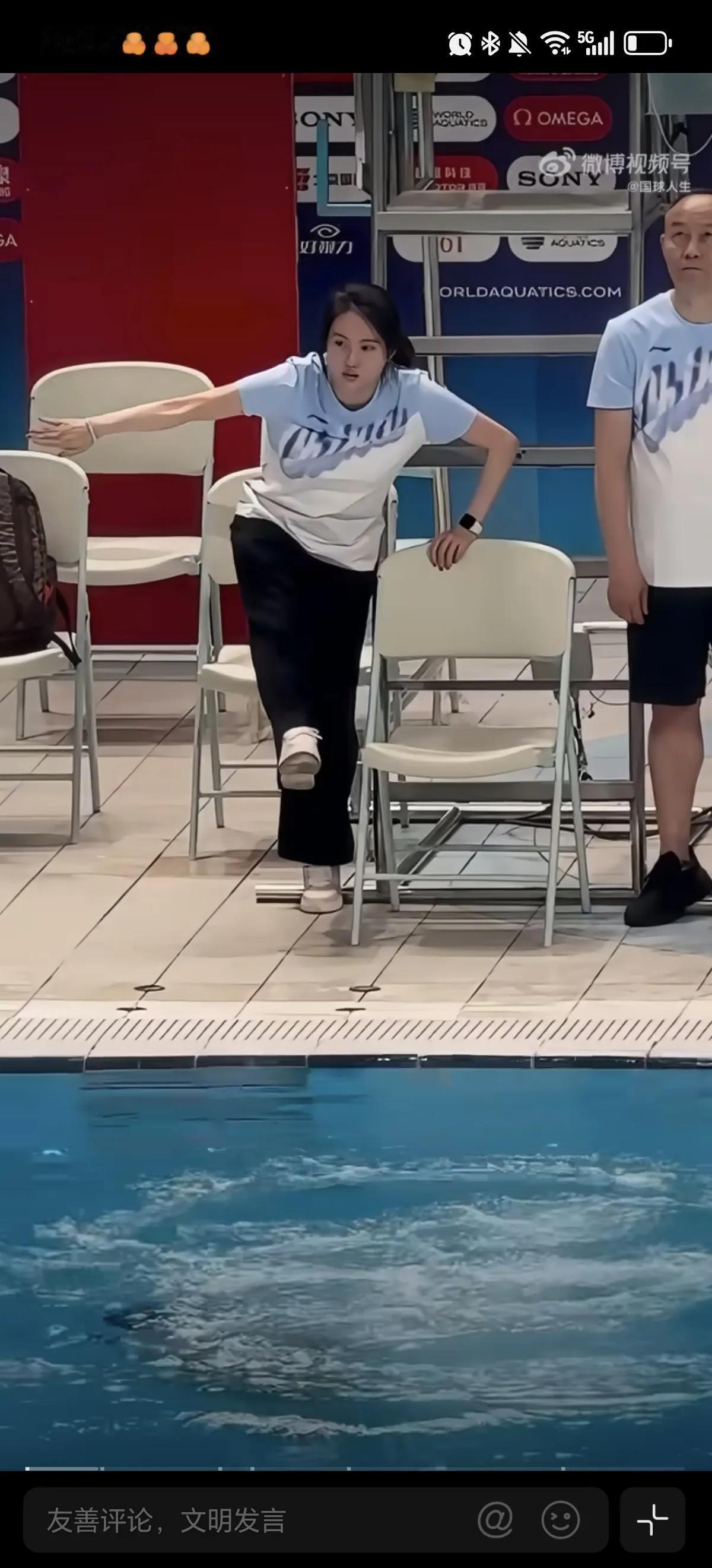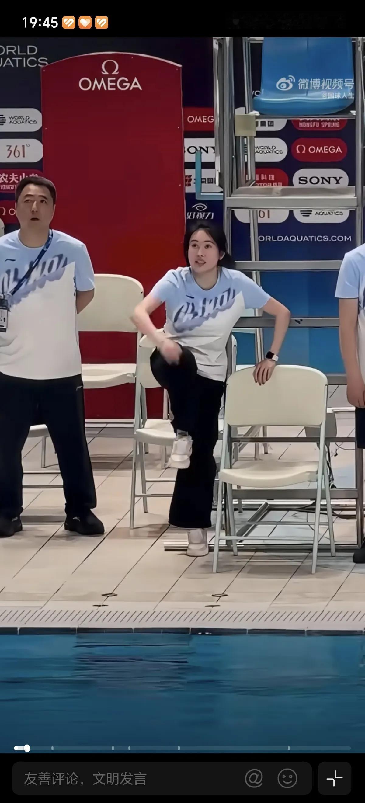 4月29日国家跳水队陈若琳教练,在水立方场地指导队员训练,在场边亲自做示范动作,太用心了陈若琳是优秀的教练,也是严厉的教练,她也是这么出来的她知道不严厉不能出才。