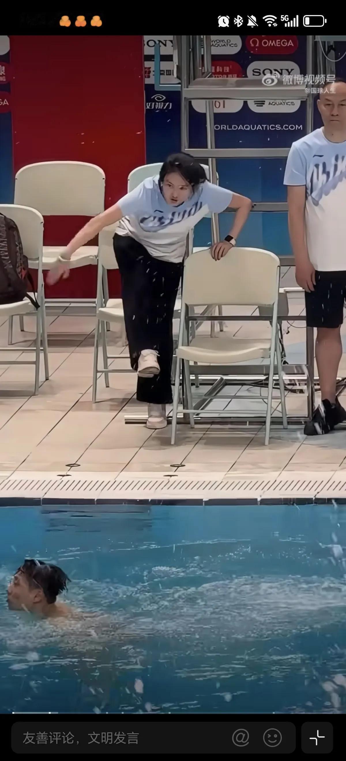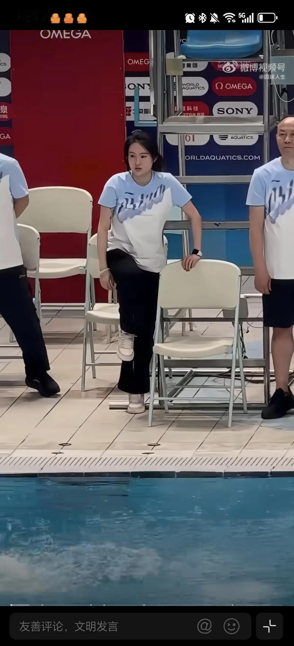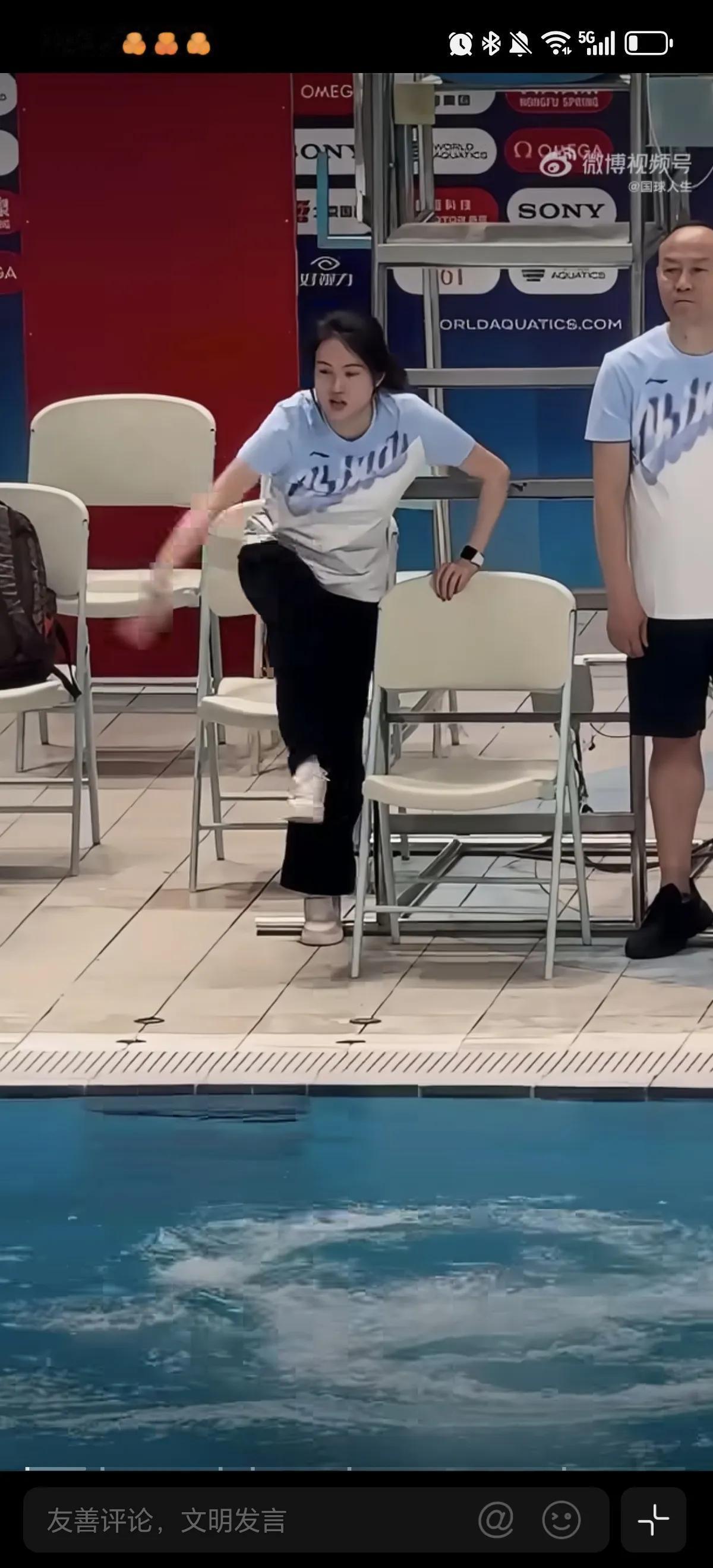 4月29日国家跳水队陈若琳教练,在水立方场地指导队员训练,在场边亲自做示范动作,太用心了陈若琳是优秀的教练,也是严厉的教练,她也是这么出来的她知道不严厉不能出才。