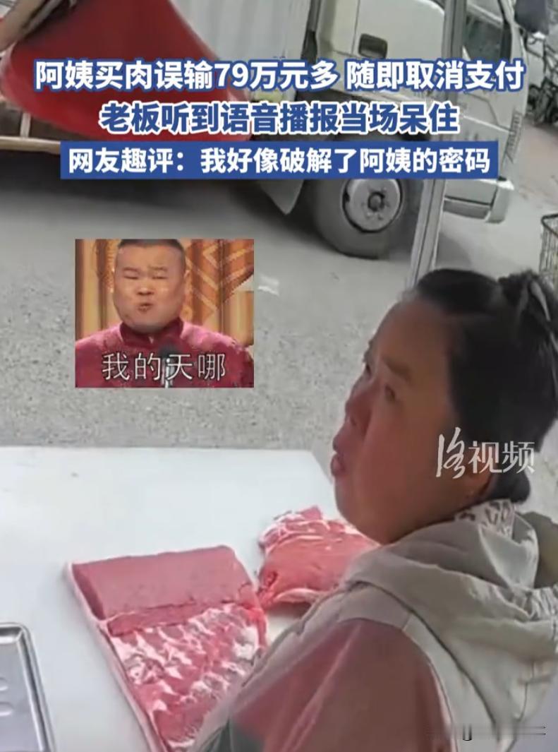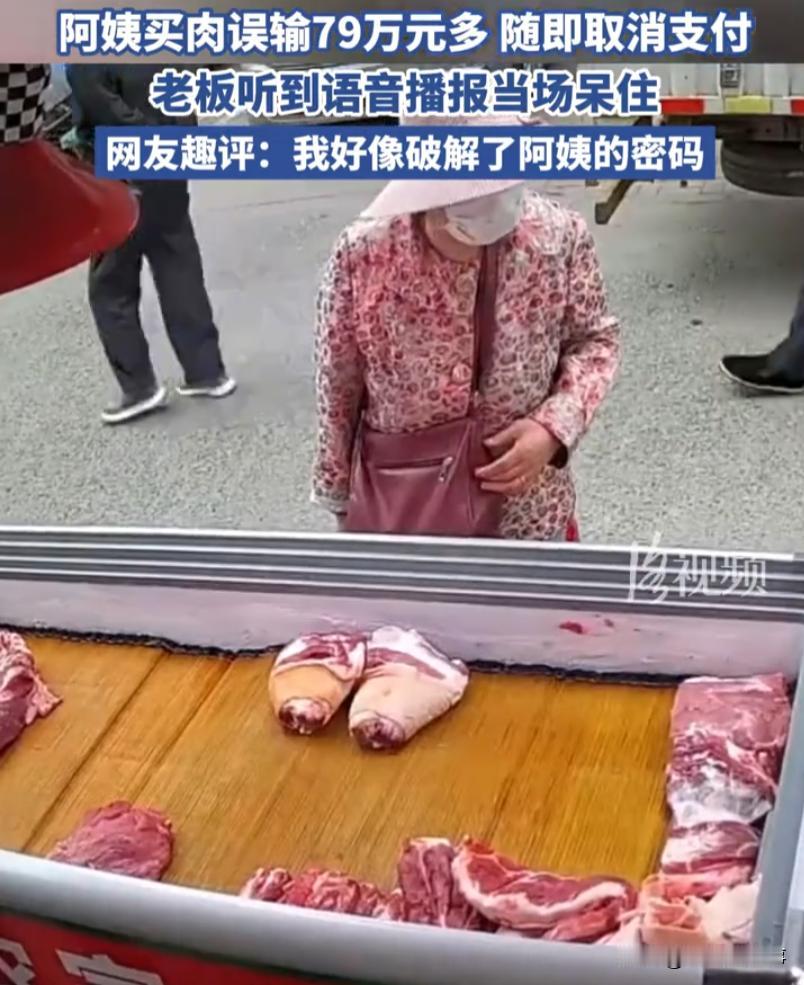 吓坏了!天津,一位大姨去市场买肉,在肉摊扫码付款时,大姨直接输入金额79万多,而老板娘在听到语音播报时,整个眼睛都瞪大了,虽然大姨立即取消支付,但她的支付密码现在全网都知道了