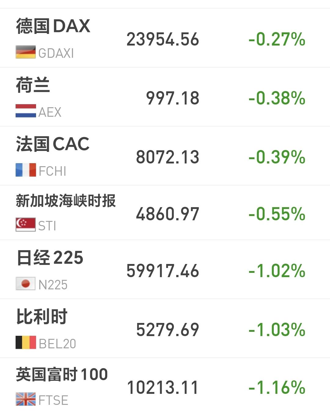 欧洲市场昨天晚上下跌,德国下跌了0.27%,法国下跌了0.39%,英国下跌了0.16%,下跌幅度都不大。