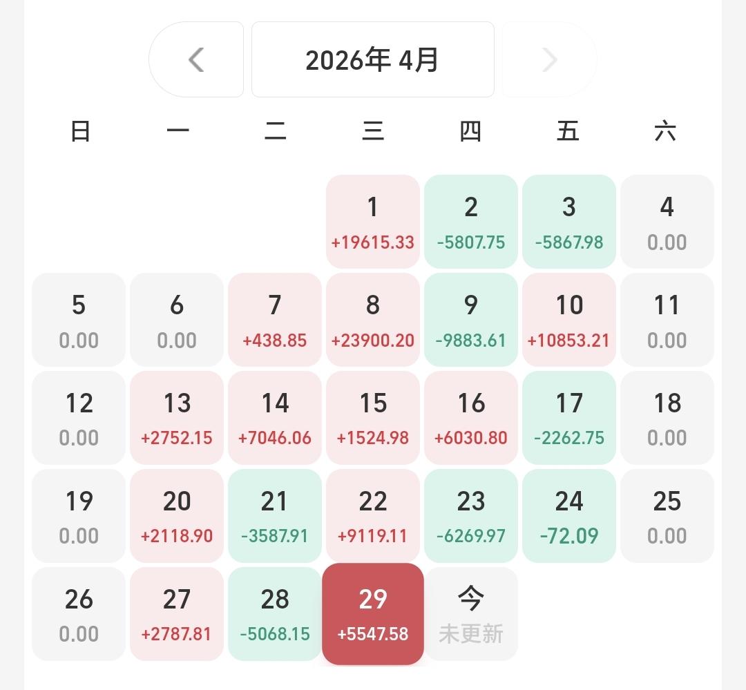 本月有了20个交易日,八亏12盈,八个交易日亏损,12个交易日盈利,月收益52914元。