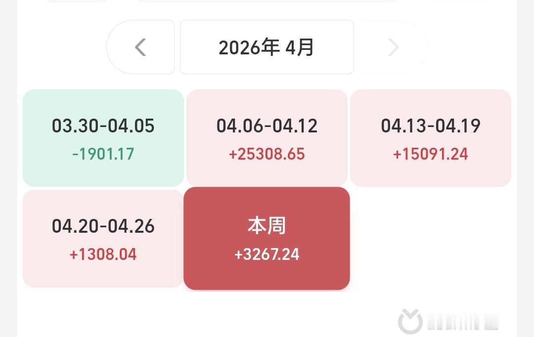 本周有了三个交易日,一亏二赢,一个交易日亏损,两个交易日盈利,周收益3267元。