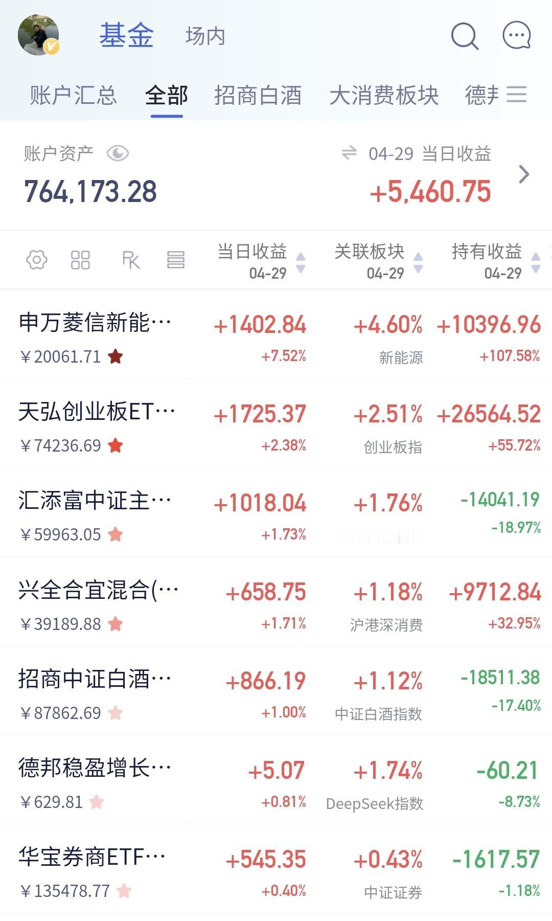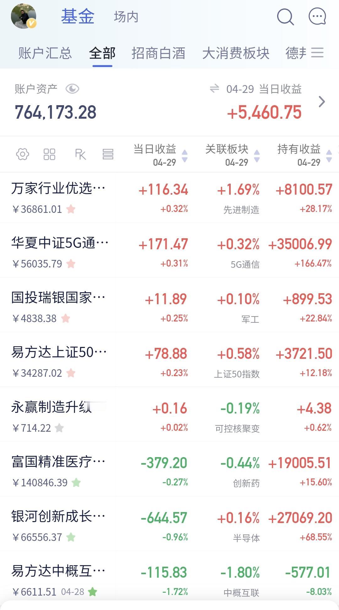 昨天基金收益5547元,基金持有773330元,现金持有1226647元,现金收益42元,资产总额1999978元,距离200万只相差了22元, 现金收益是大幅度提升,平时只有32元附近,足足增加了10块钱左右。