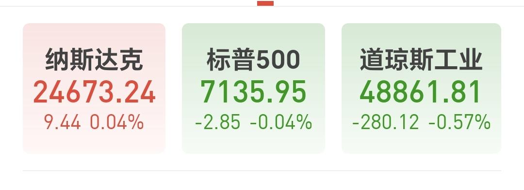 美股市场昨天晚上涨跌不一,纳斯达克指数上涨了0.04%,标普指数下跌了0.04%,道琼斯指数下跌了0.57%,涨跌幅度也都不大。
