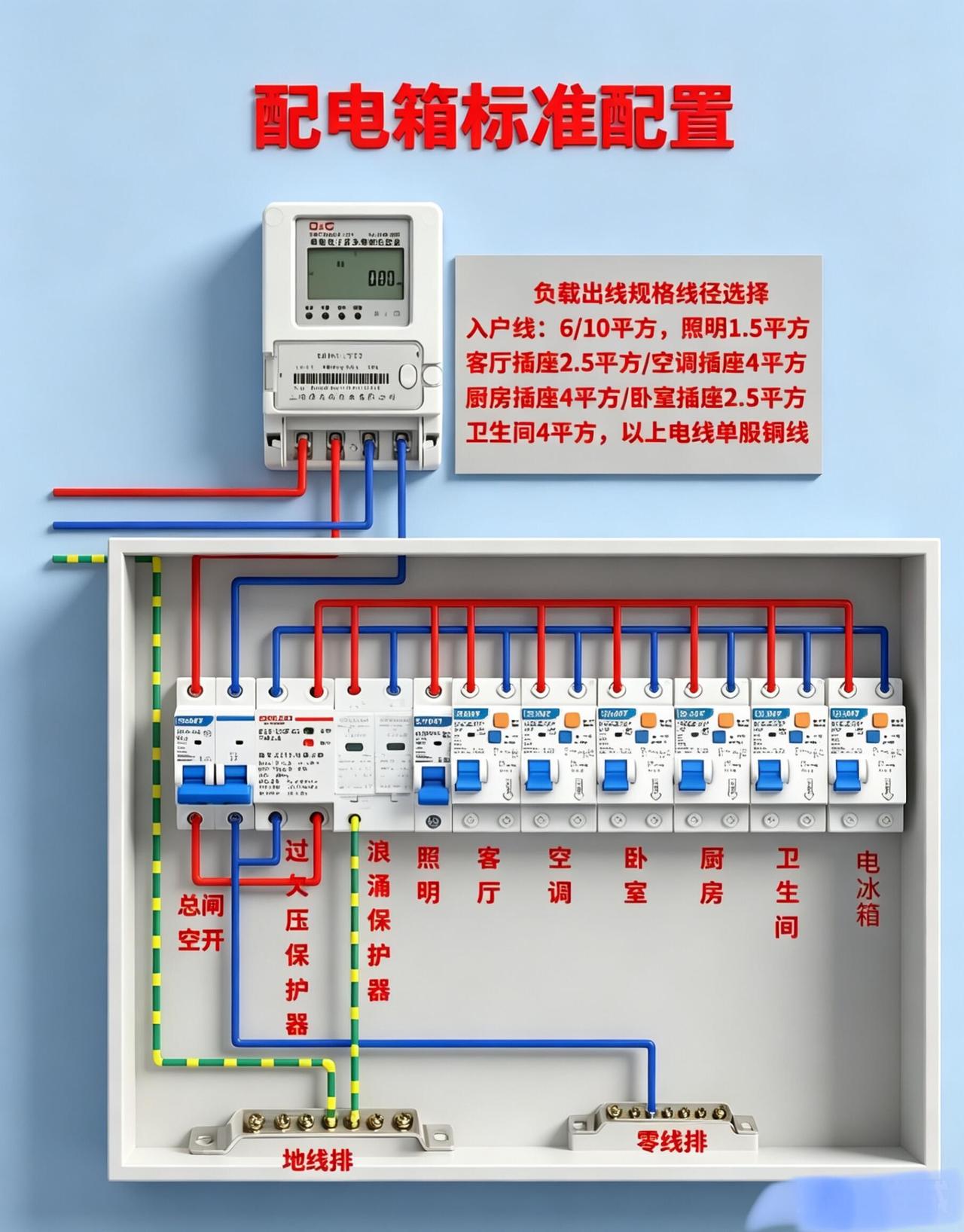 配电箱标准配置(一看就懂)水电配电箱接线 电箱接线图 配电箱接线安装 家庭配电箱