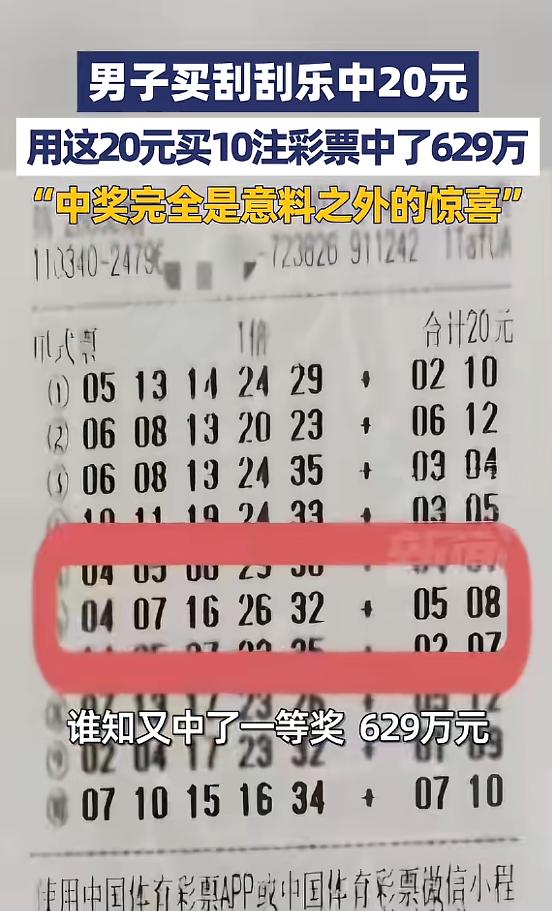 当官方公布的开奖号码与他手里的第6注一字不差时,单注奖金已经精确到了个位数:6291520元。从20块钱的刮刮乐微小回本,到转手斩获将近629万的超级大奖,整个跨度不过区区几个小时。