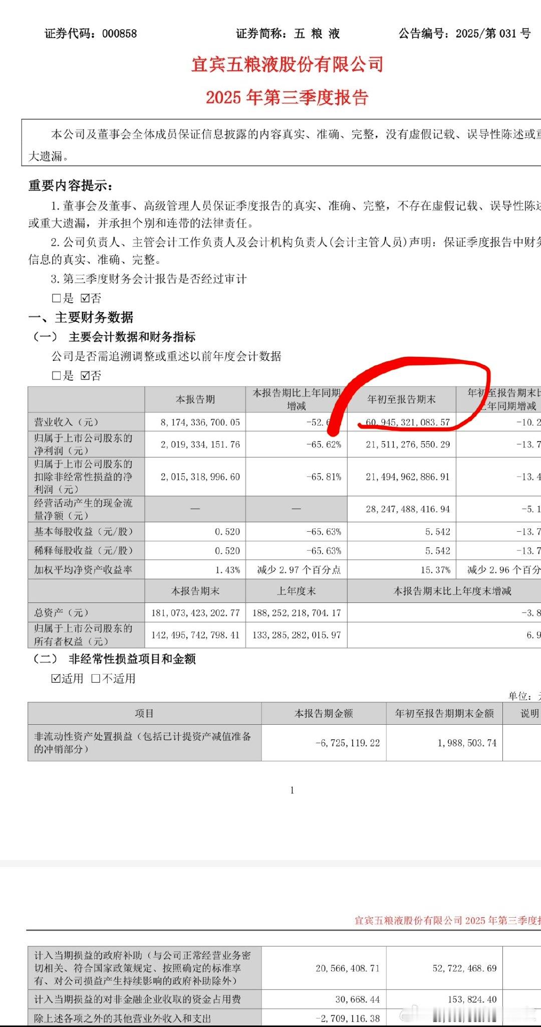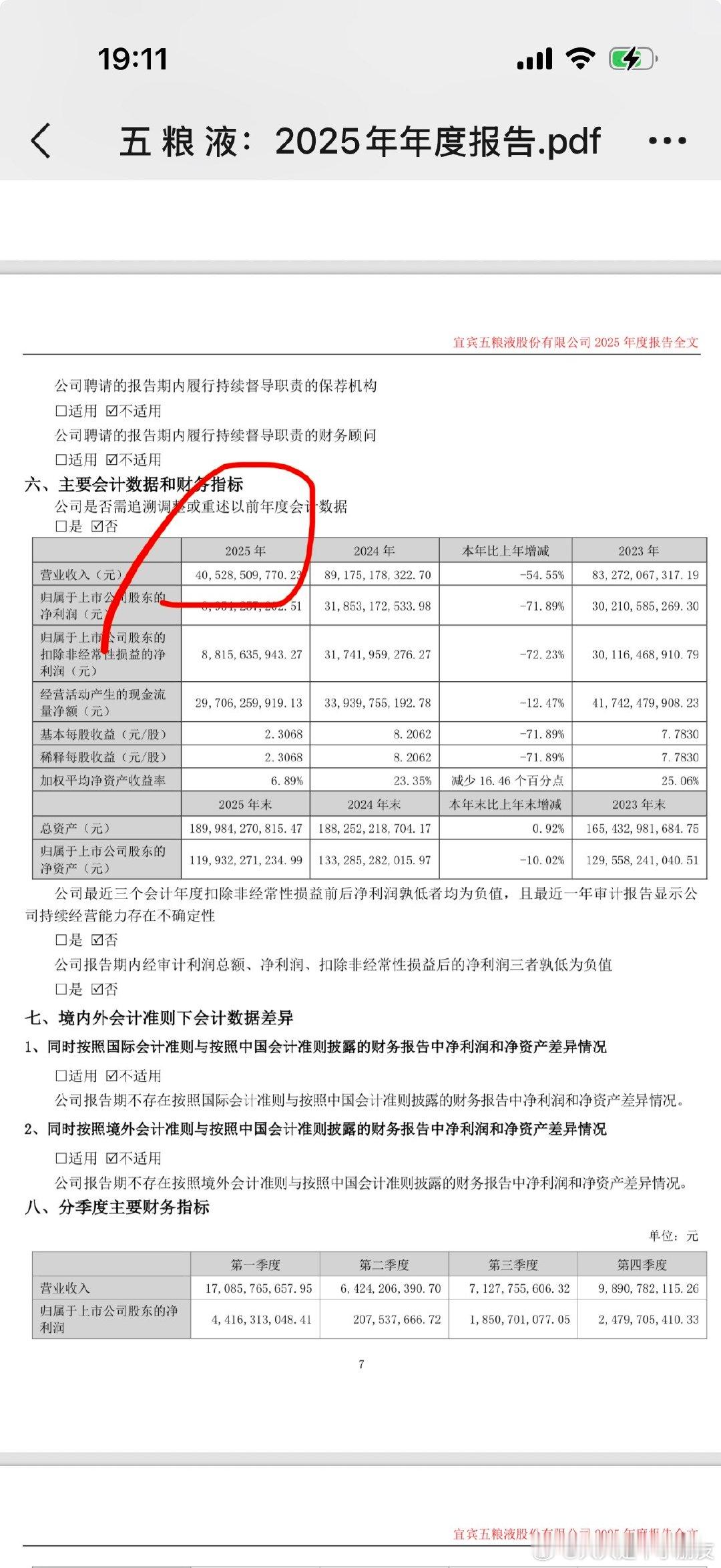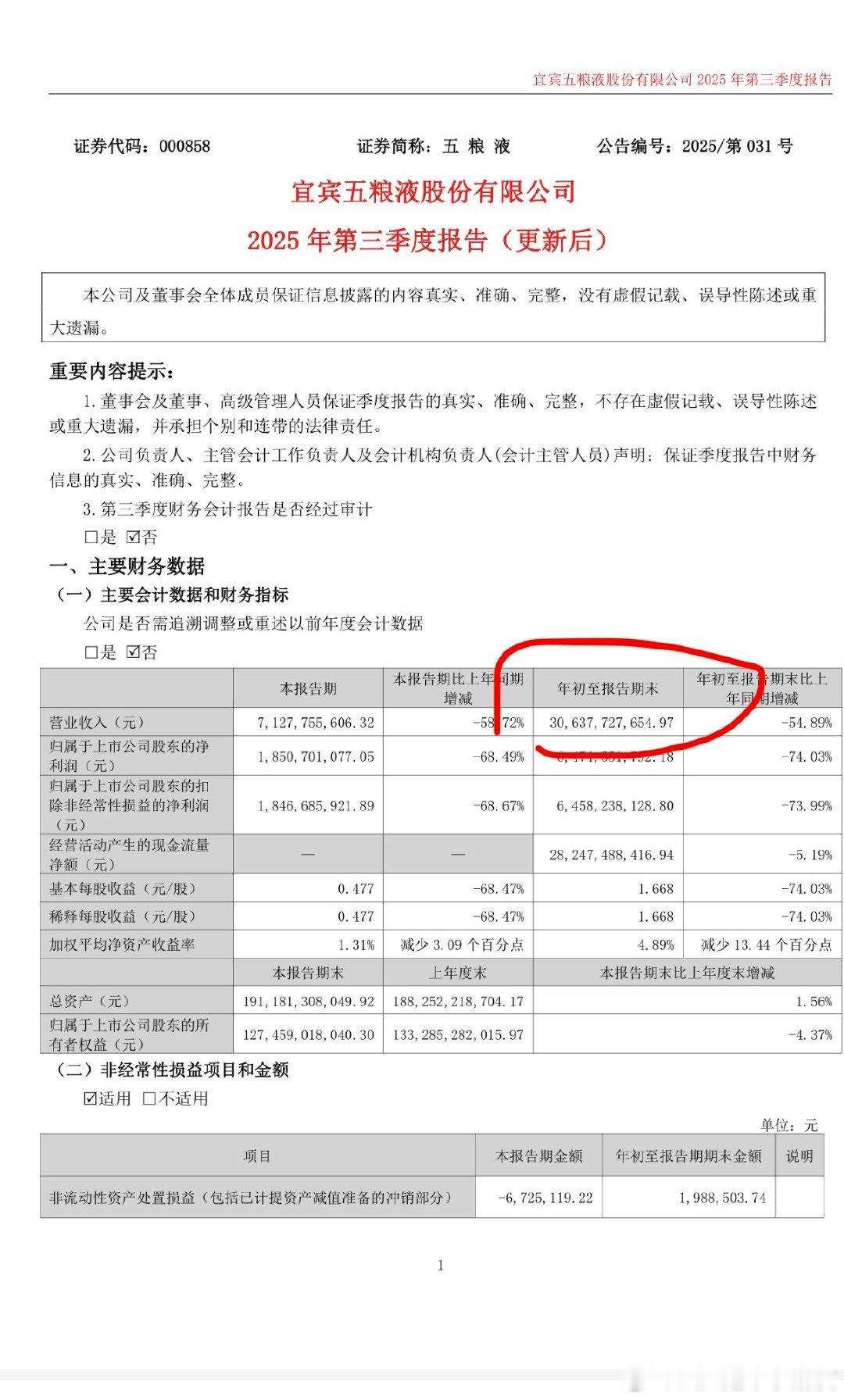 五粮液要给个合理的解释吧,为什么已经发布的财报数据全改了? 三季报已经披露年初至三季度末营收600亿以上,年报反而披露只剩400多亿,什么意思?为什么更新后的三季报营收直接砍半?