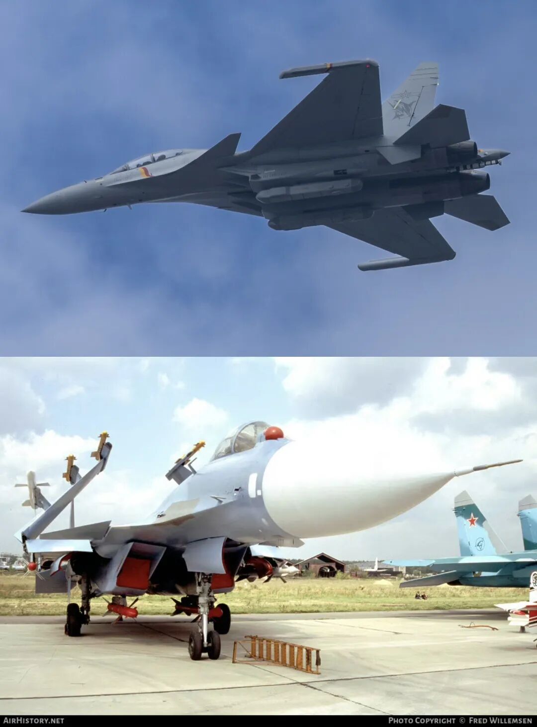 五、歼-11系列战机歼-11系列战机以前苏联的苏-27SK战机为原型设计,继承苏-27UBK气动,完成国产化机身、结构、飞控的验证。歼-16战机则是在歼-11BS战机的基础上深度改进而来,有最强侧卫之称。