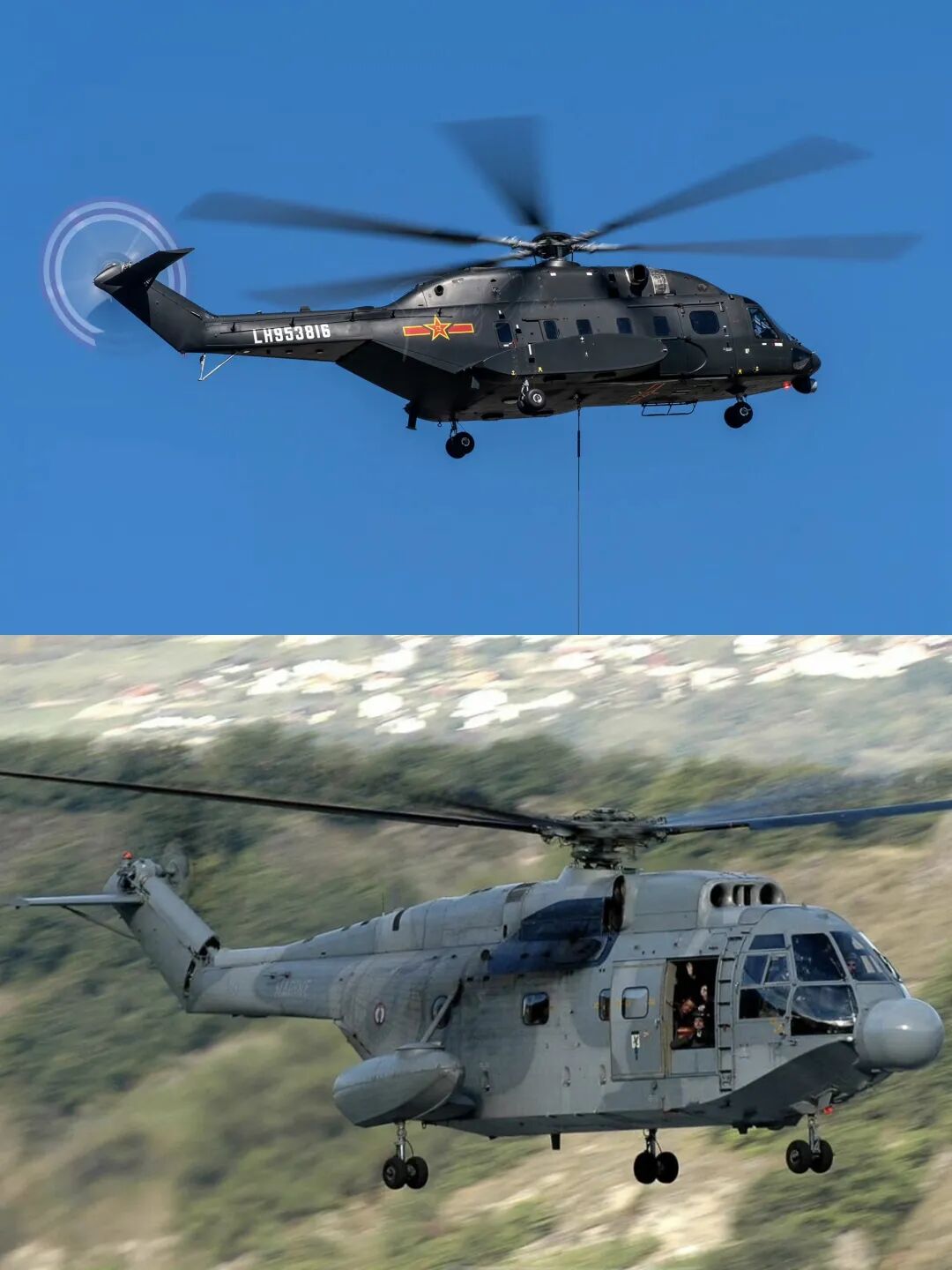 三、直-8系列直升机直-8 系列直升机是基于法国“超黄蜂”(SA321)直升机仿制并深度改进的大型多用途运输直升机。历经四十余年发展,已从早期仿制型号蜕变为覆盖陆、海、空及民用领域的成熟家族,具备高原飞行、两栖登陆、反潜预警等多种作战能力。