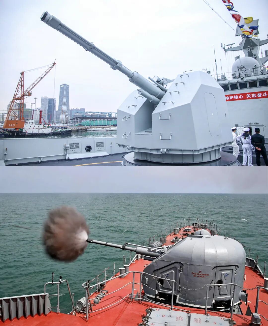 十、H/PJ-26型舰炮H/PJ-26 型 76 毫米舰炮是中国在俄罗斯 AK-176 舰炮基础上改进研制的单管中口径速射舰炮,主要装备于中国海军054A型护卫舰、056/056A型轻型护卫舰、071型两栖船坞登陆舰以及多型海警巡逻舰等。是海军装备最广泛、数量最多的一型舰炮。