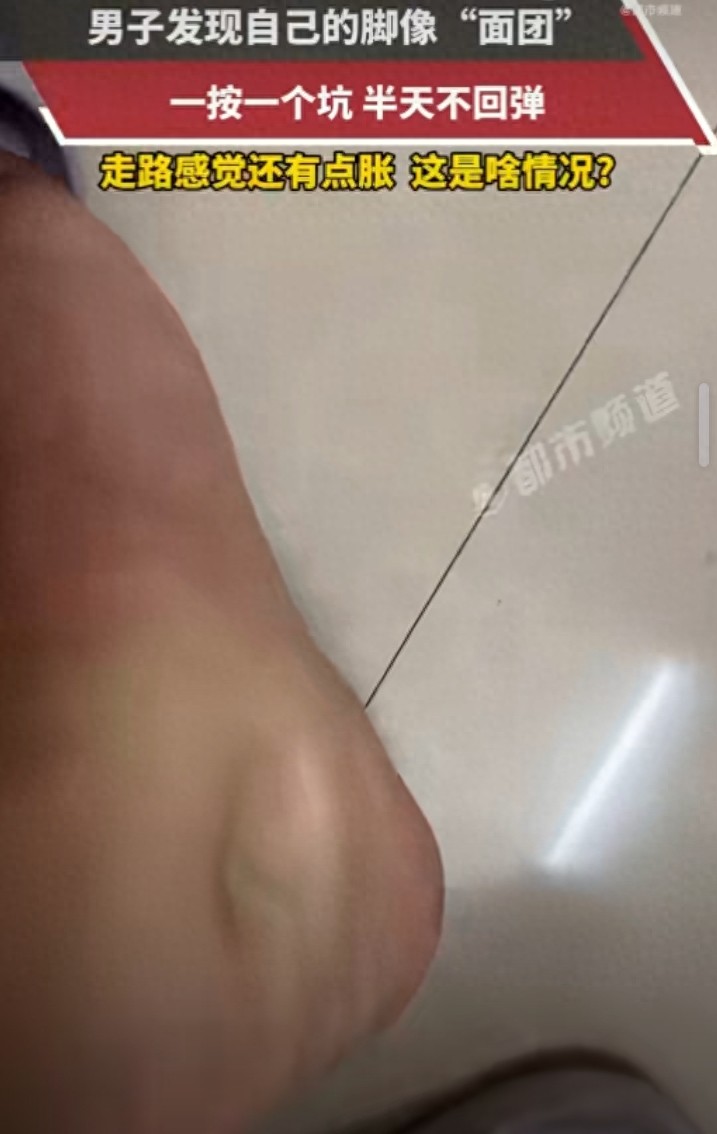 据报道,广东一位外卖小哥在送完餐后,发现自己双脚异常浮肿,用手一按就是一个深深的凹坑,半天都弹不回来,走路时还伴有明显的胀感 。他将自己的状况拍视频发到网上,没想到评论区里大量网友立刻警觉,纷纷提醒他:"这是凹陷性水肿,大概率是肾脏出了大问题,赶紧去医院!"