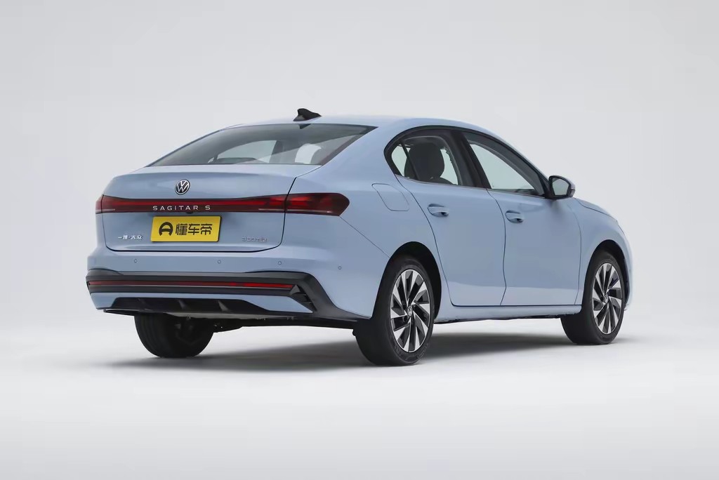 刚走进4S店,全新速腾S就牢牢抓住了我的眼球,作为一个颜值党,我一直觉得家用车不用太浮夸,但一定要耐看、有质感,全新速腾S正好踩在了我的审美点上。前脸是典型的大众新设计语言,扁平化风格干净利落,VW车标稳稳嵌在横向镀铬饰条中央,和两侧细长锐利的熏黑LED大灯无缝衔接,形成一体化的视觉效果,没有多余的线条,透着德系车特有的简约大气。 绕到侧面,流畅的车身线条让人眼前一亮,一条平缓的腰线从翼子板一直延伸到车尾,把整车轮廓勾勒得修长舒展;车顶线条从B柱后缓慢下滑,做出了轻微的溜背姿态,既优化了风阻系数,又没像纯溜背车那样牺牲后排空间,这点对家用车来说太重要了。车尾的设计和前脸完 美呼应,贯穿式LED尾灯是点睛之笔,夜间点亮后辨识度超高,灯带的亮度和均匀度都很出色。我特意让老婆孩子绕车看了一圈,他们都说“比咱家老速腾好看太多了,大气又不笨重,开出去有面子”。
