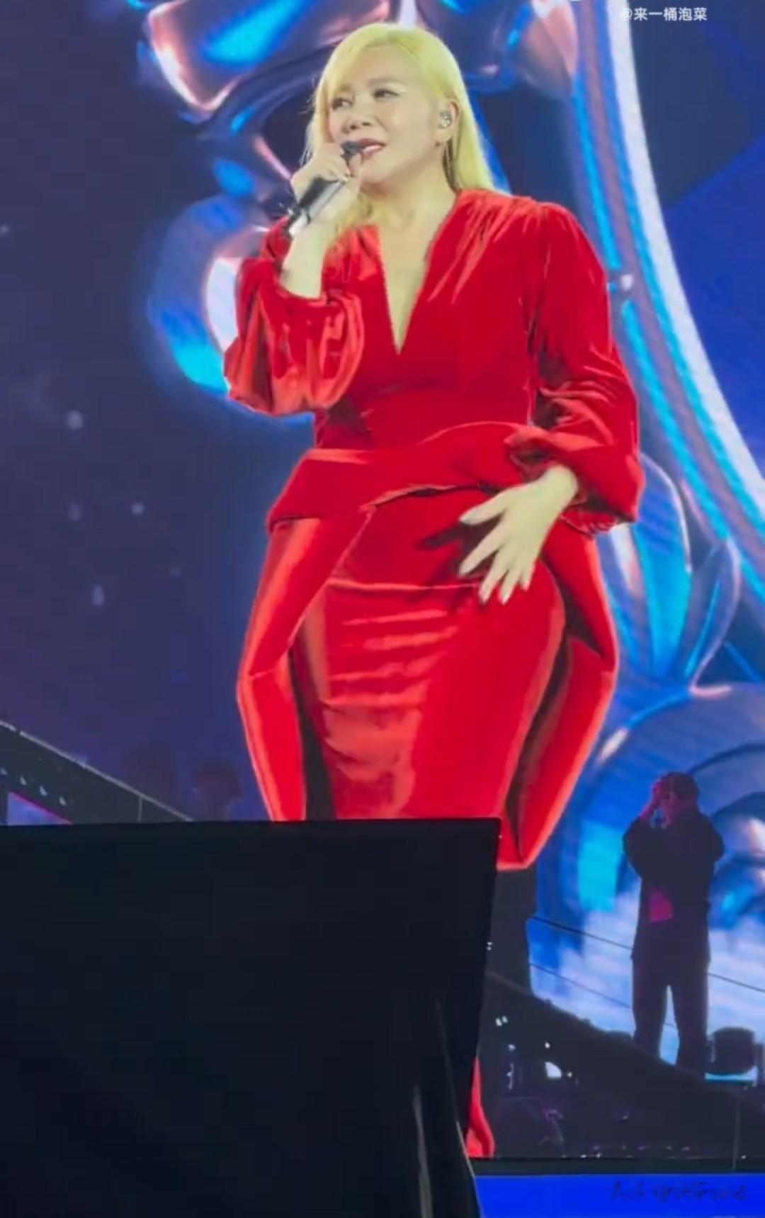 除了形象翻车,梁静茹的演唱状态也大不如前。或许是身材发福影响了气息,唱到高音部分时明显吃力,声音发飘还出现了破音。