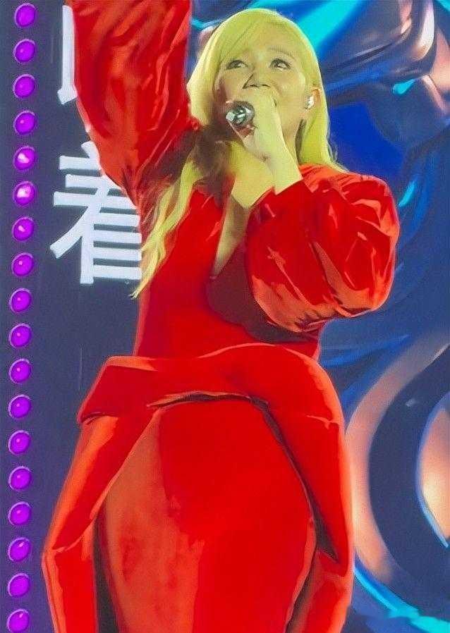 现场生图中,她穿着一件大红色的“包身礼裙”,现身舞台第一时间,想必无数人脑子里都在想“这是谁”。