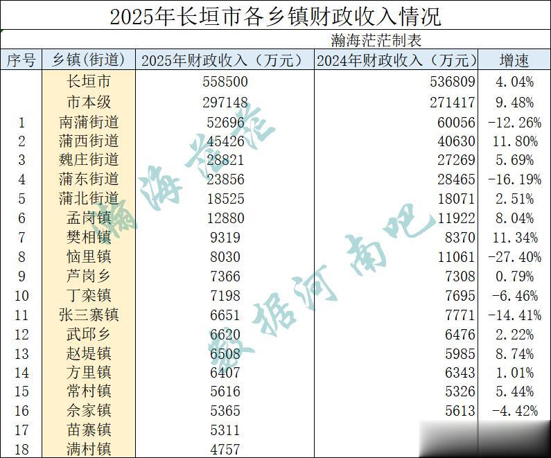 2025年长垣市各乡镇一般公共预算收入出来了,我们来看下吧,毕竟乡镇级别的数据比较难得。