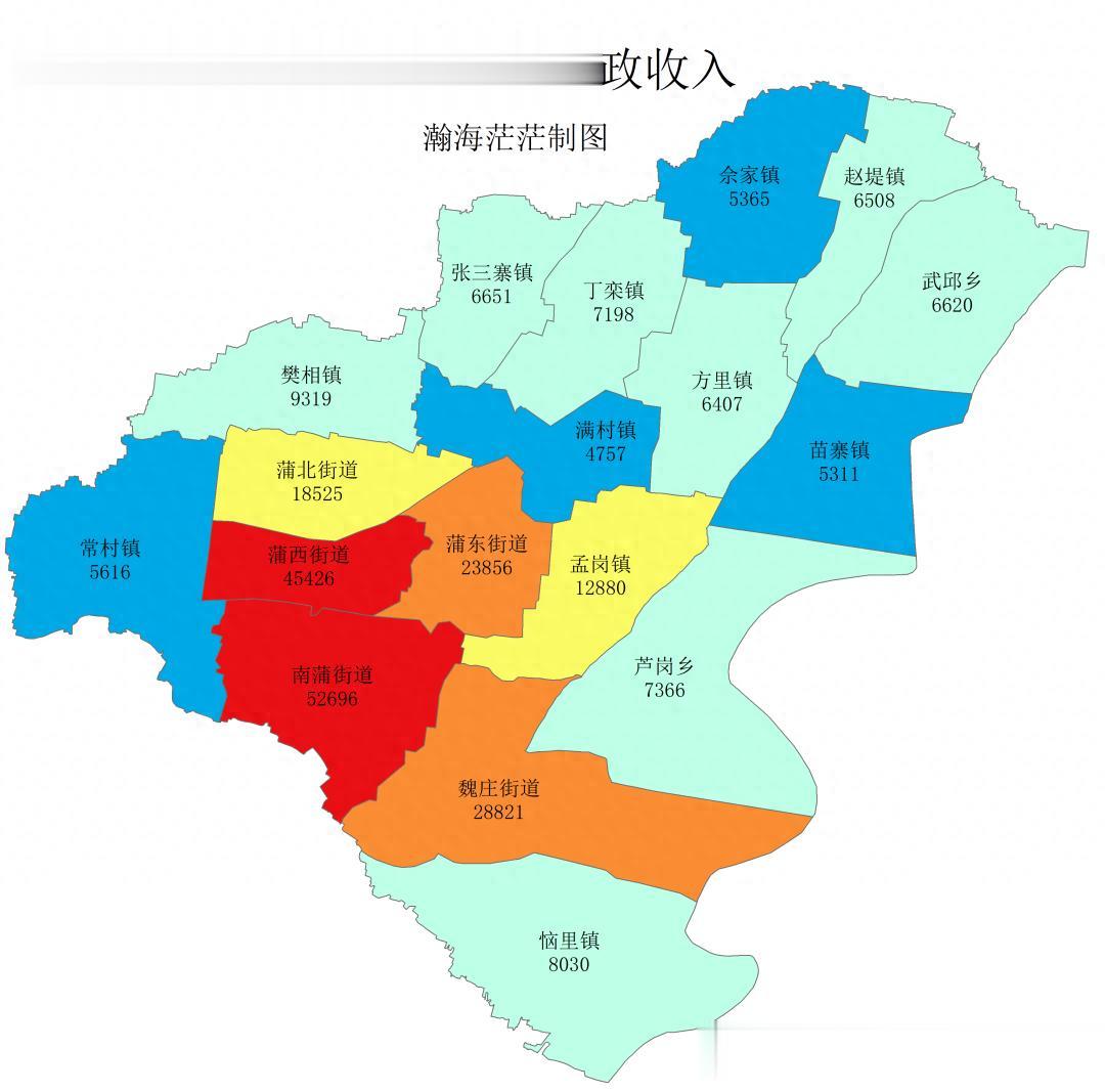 蒲西街道以4.54亿位列第二,全长垣的的五个街道排名前五,除了蒲北街道外,全部超过2亿。