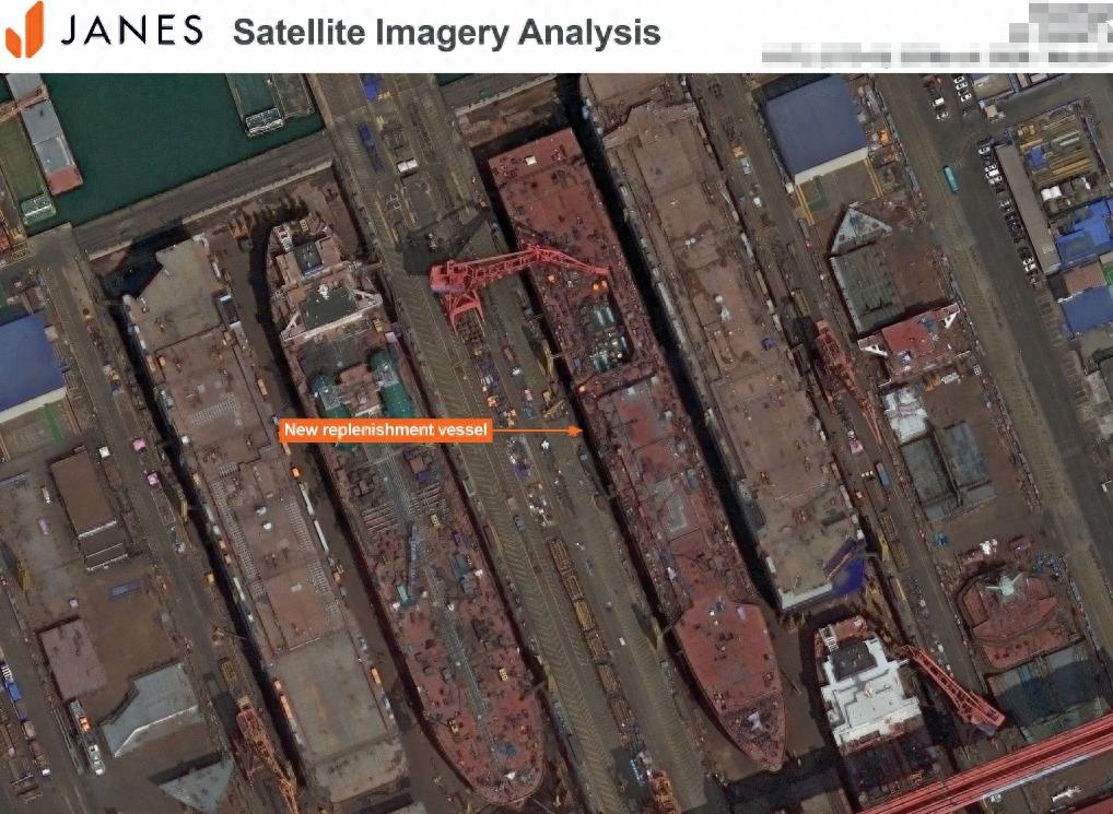 对于有着“工业克苏鲁”之称的中国来说,我们俨然已在造舰领域进入了“自由王国”,即可在很大程度上实现“想要什么,就造什么”。这一次,国内造舰业恐就要给各界带来一个全新的惊喜与冲击。英国《简氏防务周刊》报道称,通过对商业卫星照片进行分析,其认为中国正在南部某造船厂内,建造1艘超大型综合补给舰。从卫星照片研判数据来看,其猜测该舰的长度和宽度要比解放军海军现役最大的901型综合补给舰还要大,预计该舰的满载排水量将达到不低于6万吨级的水平。