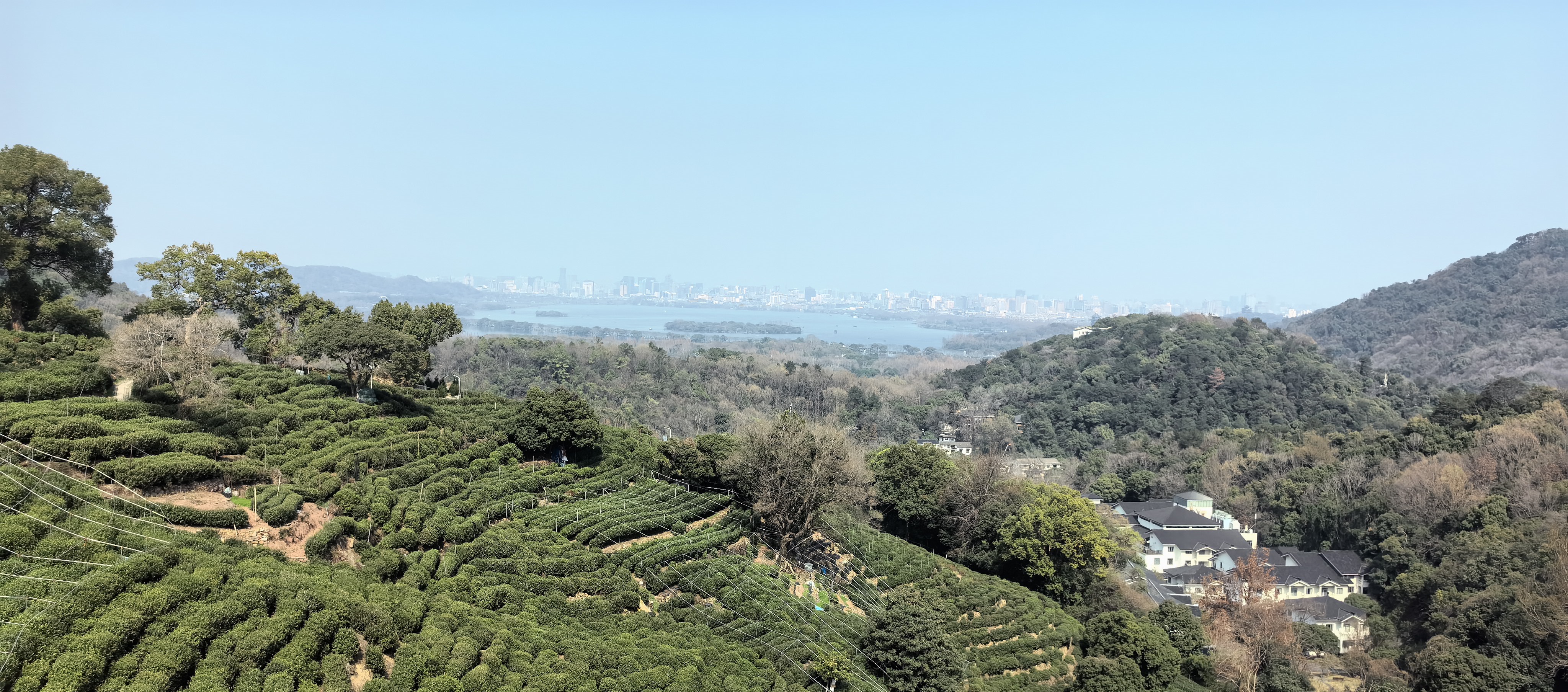 .村庄、钱塘江、西湖、梯田、延绵的山峰都尽收眼底。