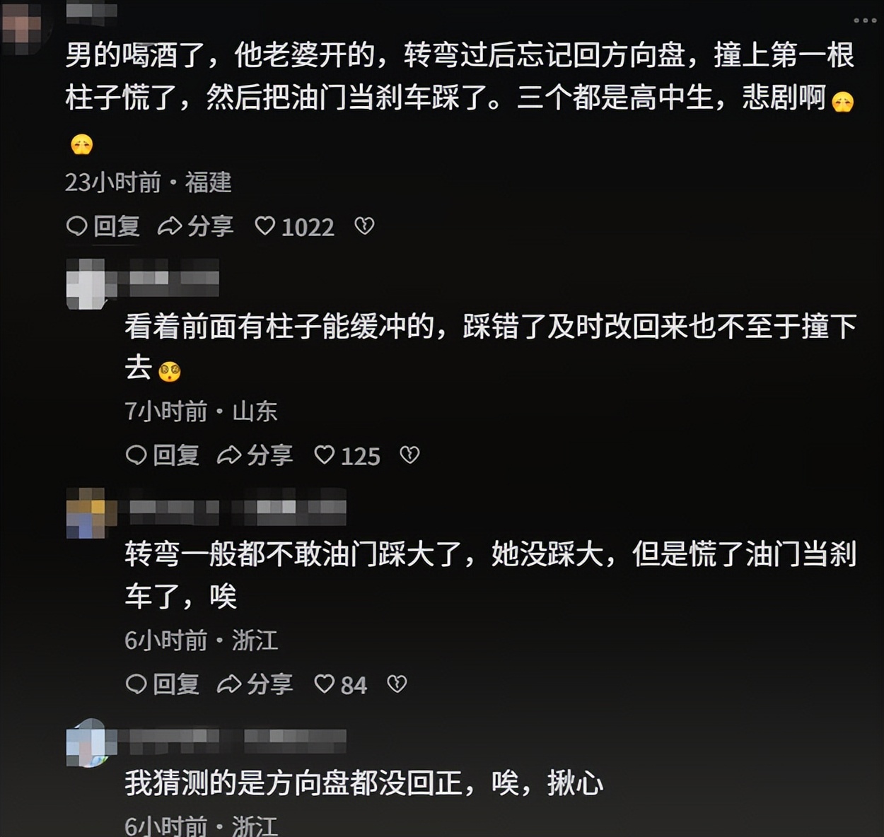 知情人爆料,三次机会被浪费根据知情人爆料,当时在聚会上,丈夫喝了酒无法开车,于是将车辆交给妻子开,妻子虽然有驾照,但从未真正开过车,于是在行驶中就出了差错撞上护栏,最终酿成了悲剧。
