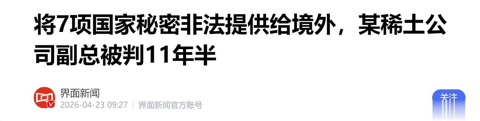 11年半的刑期,重不重?一点都不重!因为他出卖的不是普通的商业信息,而是国家战略安全,是整个稀土产业链的命脉。