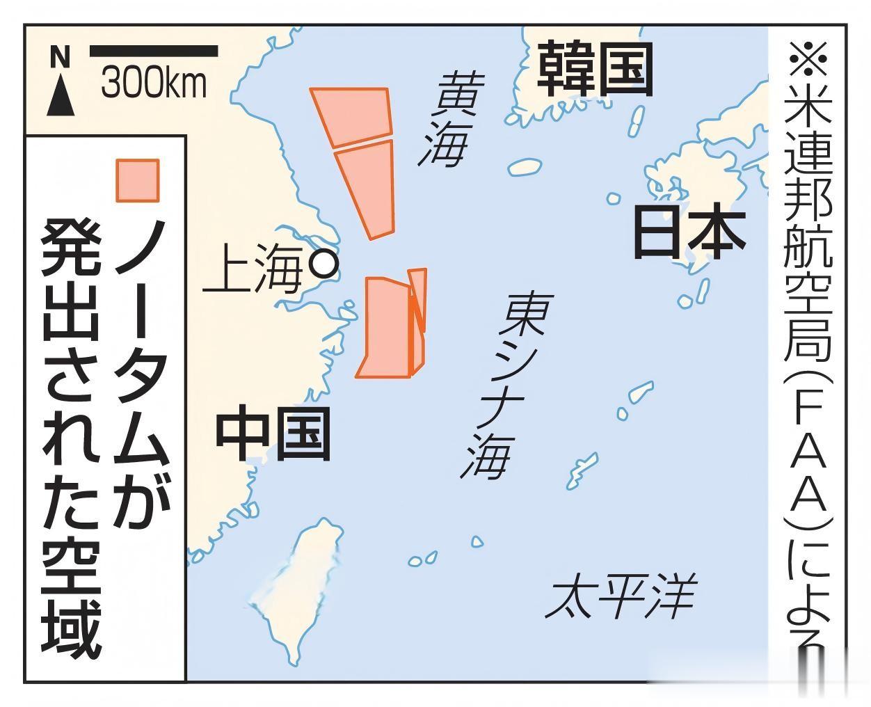 4月17日共同社称,美国联邦航空局FAA刷新全球空域地图,接到中国讯息,确认在黄海和东海上空,分别划出2个和3个NOTAM航行警戒区,空域面积达70000平方公里,时长为40天,范围之广、时间之长非常罕见。