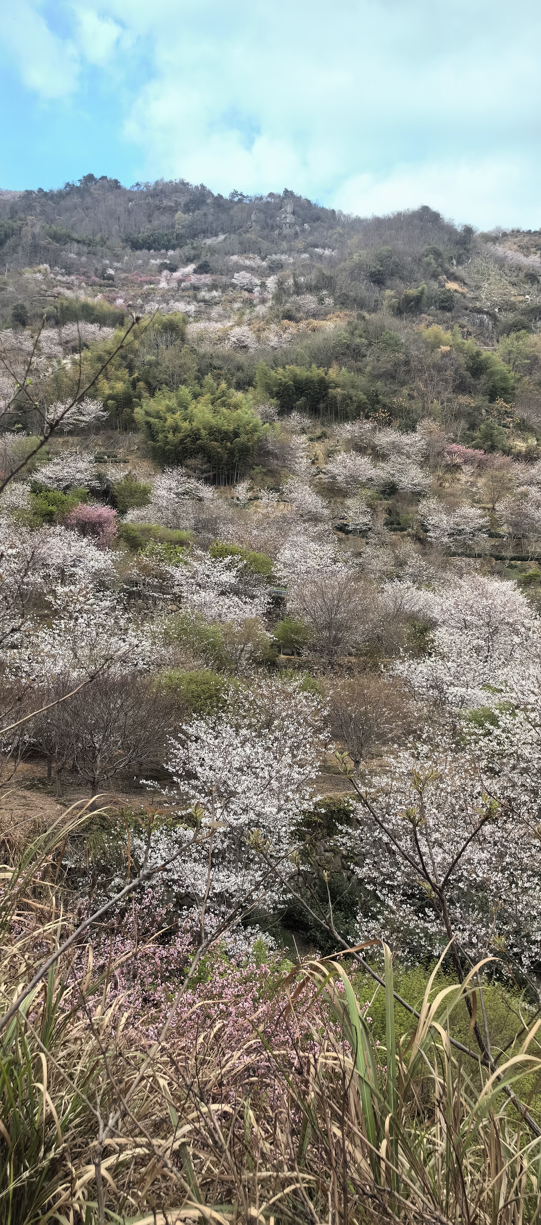 越是到王可湾,樱花越是多。上周没有开花的那些樱花树,这周都爆开了全满树。站在观景台上,往不同的方向看,除了樱花还是樱花。