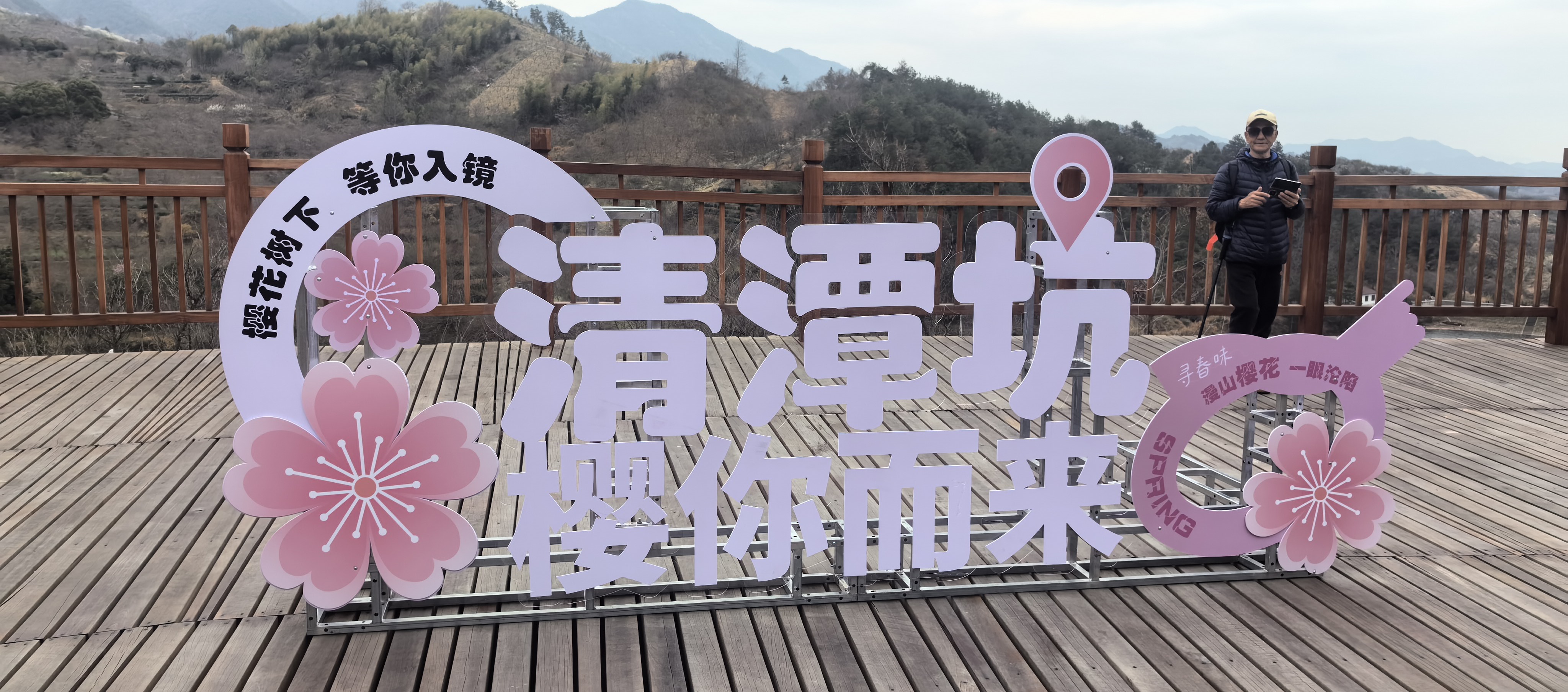 清潭坑的路边零星的为樱花节布置着。默默预示一场即将到来的春日盛宴。就如樱花也在蓄力静候绽放的时刻。那时候我就在想,等到这里樱花开放的时候一定很美。所以很想着 下周再来一次。