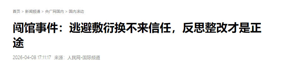 闯馆事件:逃避敷衍换不来信任,反思整改才是正途 2026-04-08 17:11:17 来源:人民网-国际频道