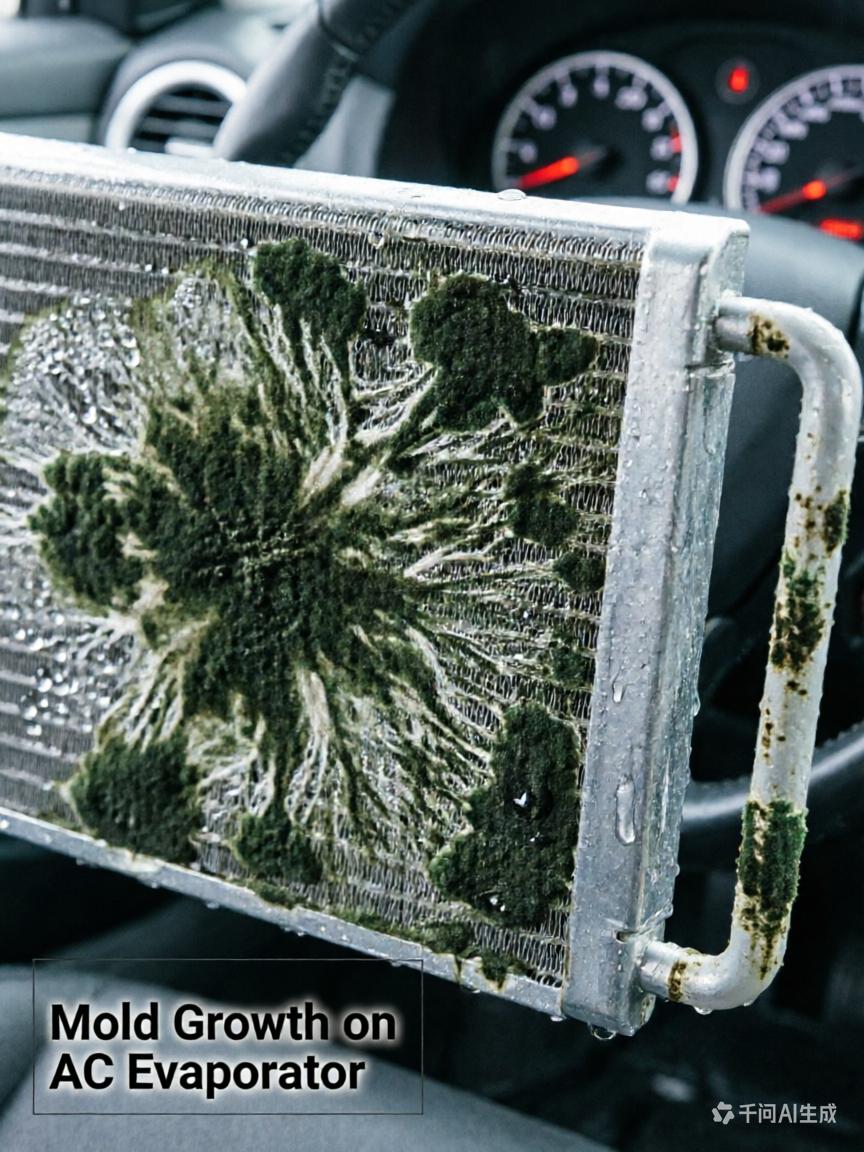 重灾区就在车里的空调蒸发器上,这玩意就像霉菌的五星级酒店,舒服得很!