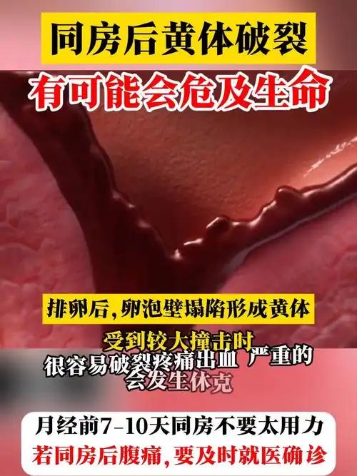 如果在这个时期,腹部受到外力撞击、剧烈运动,或是同房时动作幅度较大、用力过猛,就可能导致黄体破裂。一旦破裂,卵巢上的血管会持续出血,而且很多时候是腹腔内出血,外表看不出来,但肚子里却在不断“流血不止”。