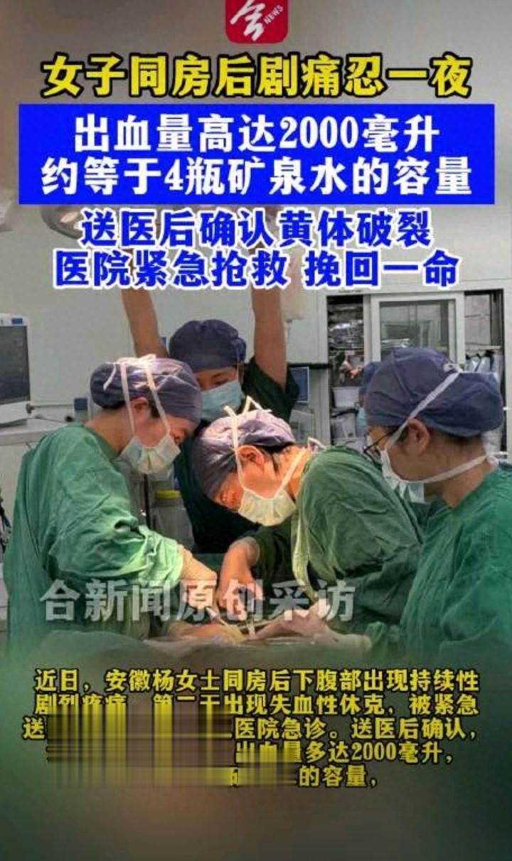 近日,一则“女子同房后出血2000ml,相当于总血量一半”的新闻冲上热搜,让不少人感到心惊。一次亲密行为,竟然会导致如此严重的大出血,甚至危及生命,这到底是怎么回事?很多女性平时也遇到过同房后少量出血的情况,往往不当回事,而这次的案例,无疑给所有人敲响了一记警钟。