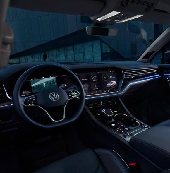 此外,外观、内饰设计也进行了升级,现在经销商主推的就是黑武士的外观。整个外观设计是全黑的造型,不仅车身是黑的,并且轮毂格栅全部都是熏黑的设计,搭配上22英寸的大轮毂,颜值部分依然优秀。车身数据部分,这款大众途锐的长宽高分别为4913/1984/1697mm,轴距是2899mm!很可惜这款新车只有5座,而没有7座的,与竞争对手奥迪Q7相比,座椅的布局还是略微欠缺了一些。但是有一说一,奥迪Q7也已经濒临停产,所以说卖得好不好,其实和座椅的个数真没什么太大的关联性。