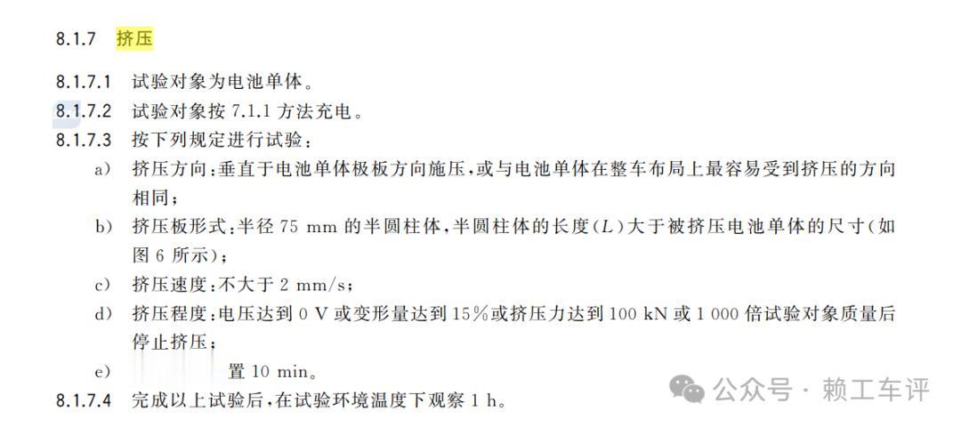 车辆发生碰撞事故极小概率会出现这么狠的变形。并且静置1h后电芯不冒烟,不起火,不爆炸。我们明年要实施的电池新国标在这一块只要求了100kN,
