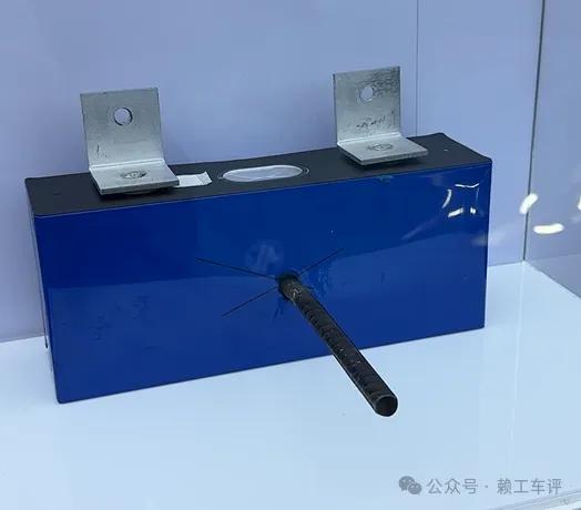 并不是强制要求针刺,当然网友很喜欢看,我还是要讲一下,新国标要求的是用一根3mm-8mm的针刺进去触发热失控,这个之前MG4上市的时候,用10根针同时刺进了这个半固体电池,没有热失控现象发生。而这次呢就是视频开头那一段直接用了10mm,也就是1cm的螺纹钢,对XYZ三个方向总共6个面都进行了穿刺,静置1h后电芯不冒烟,不起火,不爆炸,电池新国标可没有要求不能冒烟哦。