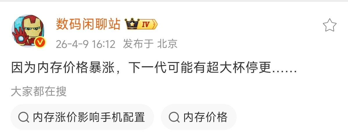 取消超大杯是很正常的事,按照这个内存趋势,今年下半年新一代大杯16+1TB可能要
